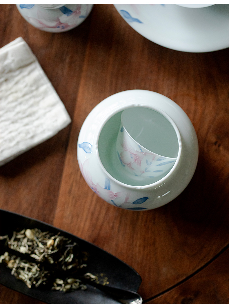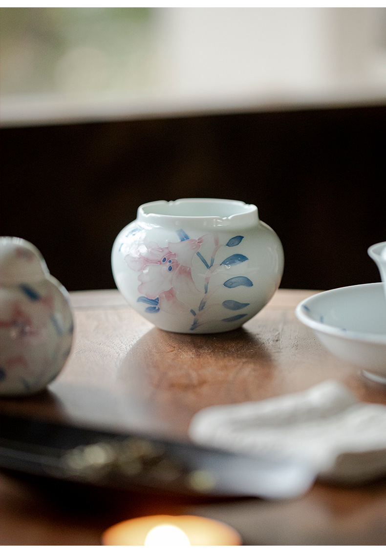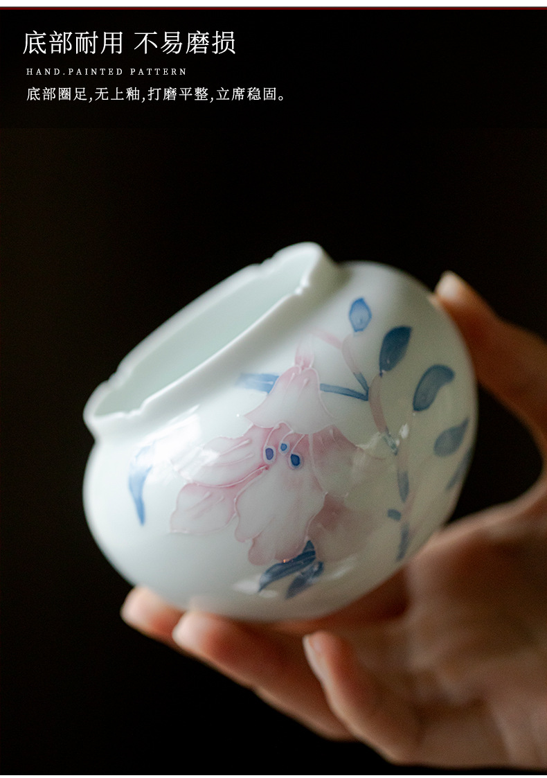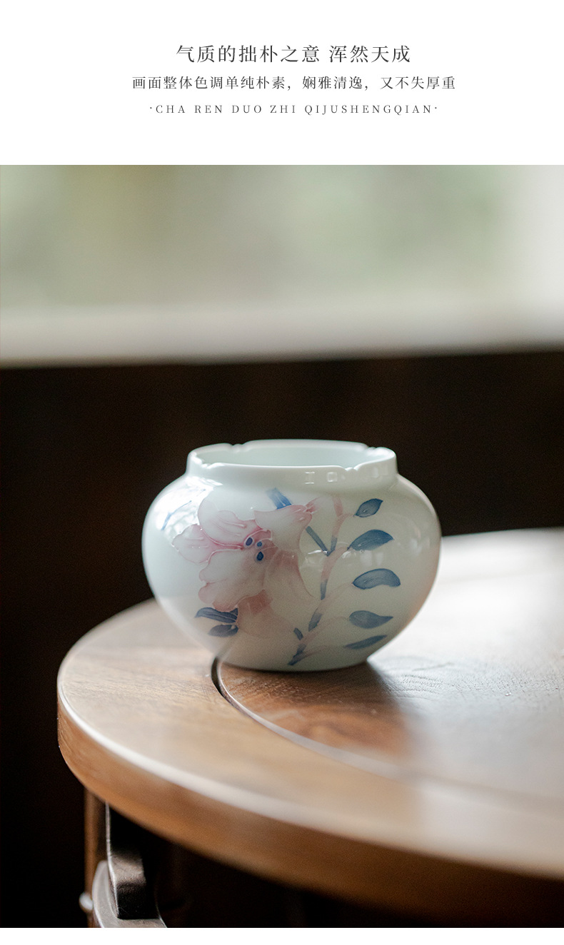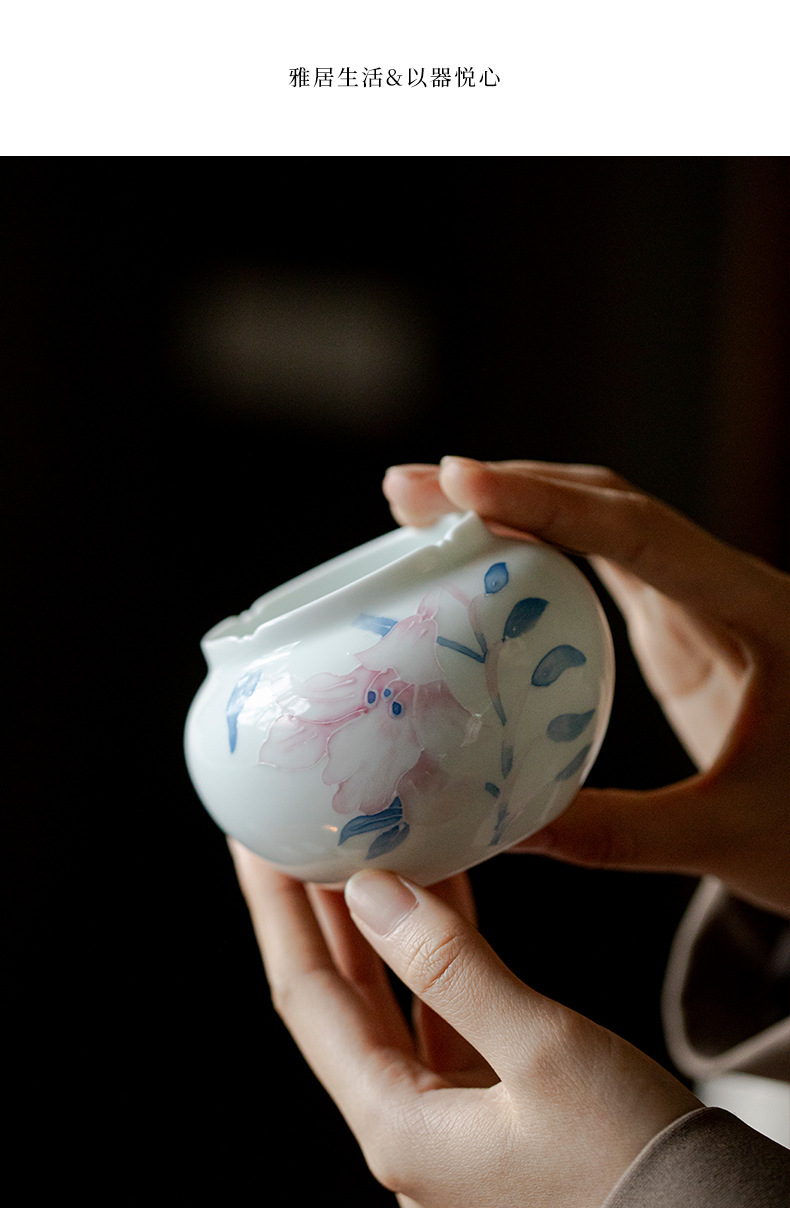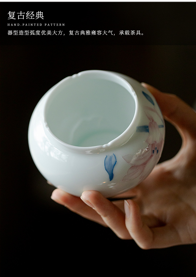 禧マグネシウム白磁グラデーション手描き蘭建水工夫茶器陶磁器のデスクトップの小さいお茶のかすの廃水のかめのお茶は洗います。