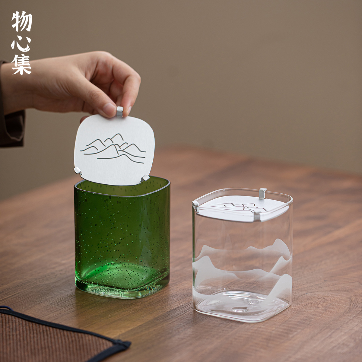 物心集新中式气泡玻璃茶洗建水带盖琉璃水盂茶台废水缸茶渣桶茶滤