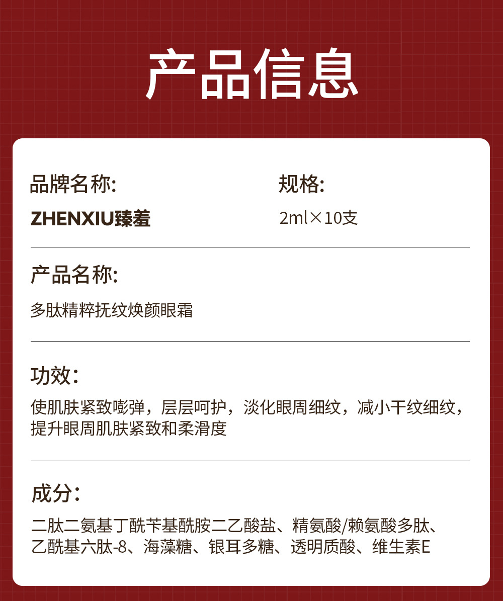 製品仕様 Zhenshy ポリペプチド エッセンス リンクル スムージング アイクリーム,Zhenshyよもぎアイエッセンス
