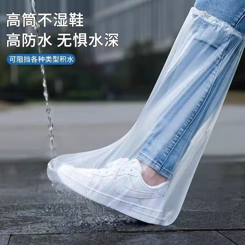 一次性雨鞋防水防滑高筒鞋套下雨天加厚耐磨透明塑料脚套外穿防雨