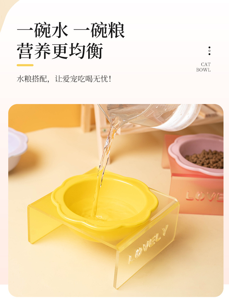 わぁ、カスタム空飛ぶ円盤猫碗ペット碗陶磁器猫碗棚保護頚椎斜口猫飯碗ペット木棚