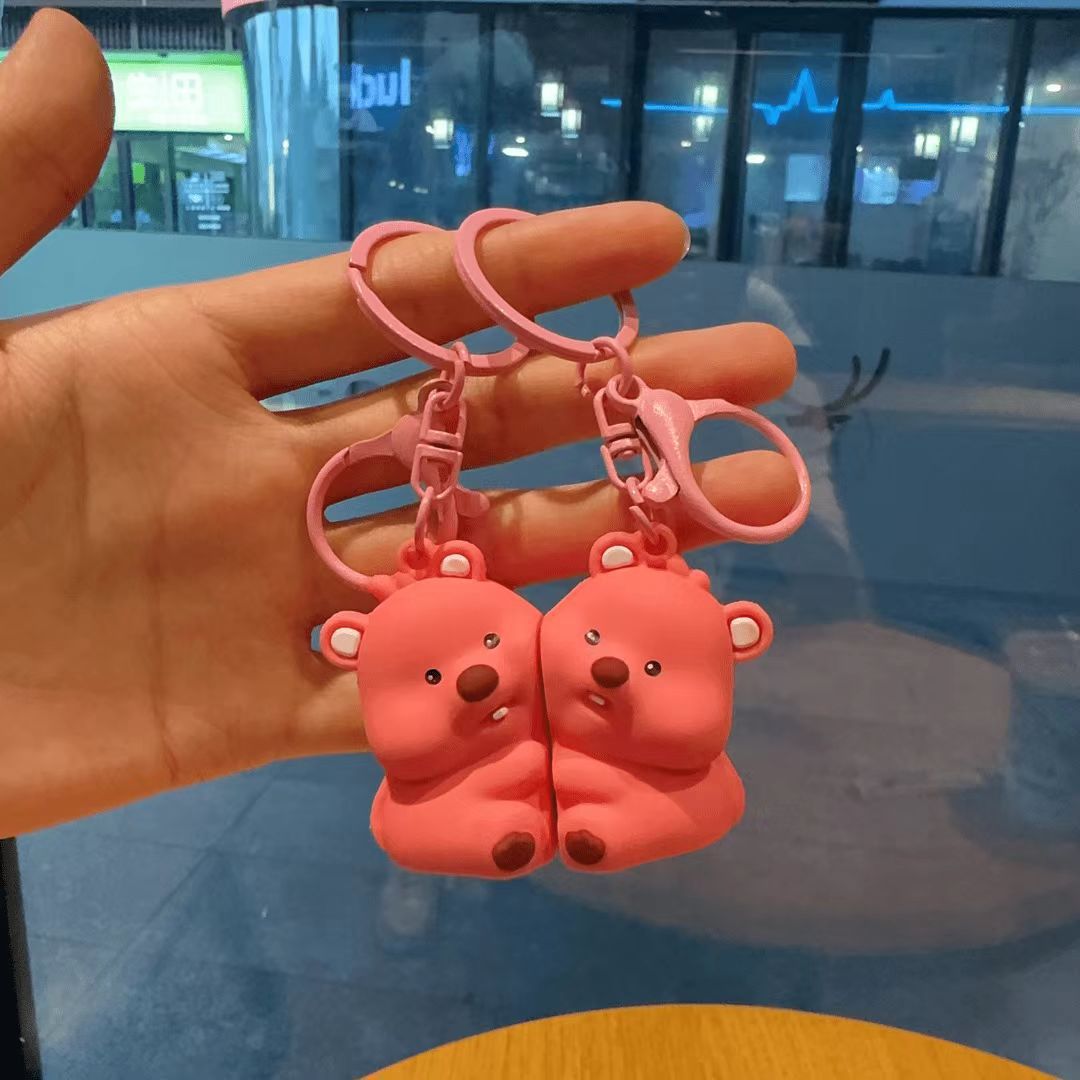 既製品PVCソフト磁気キーホルダー、クリエイティブな漫画風カエルキーチェーン、カップル用ペンダント、人形、小さなクマのアクセサリー