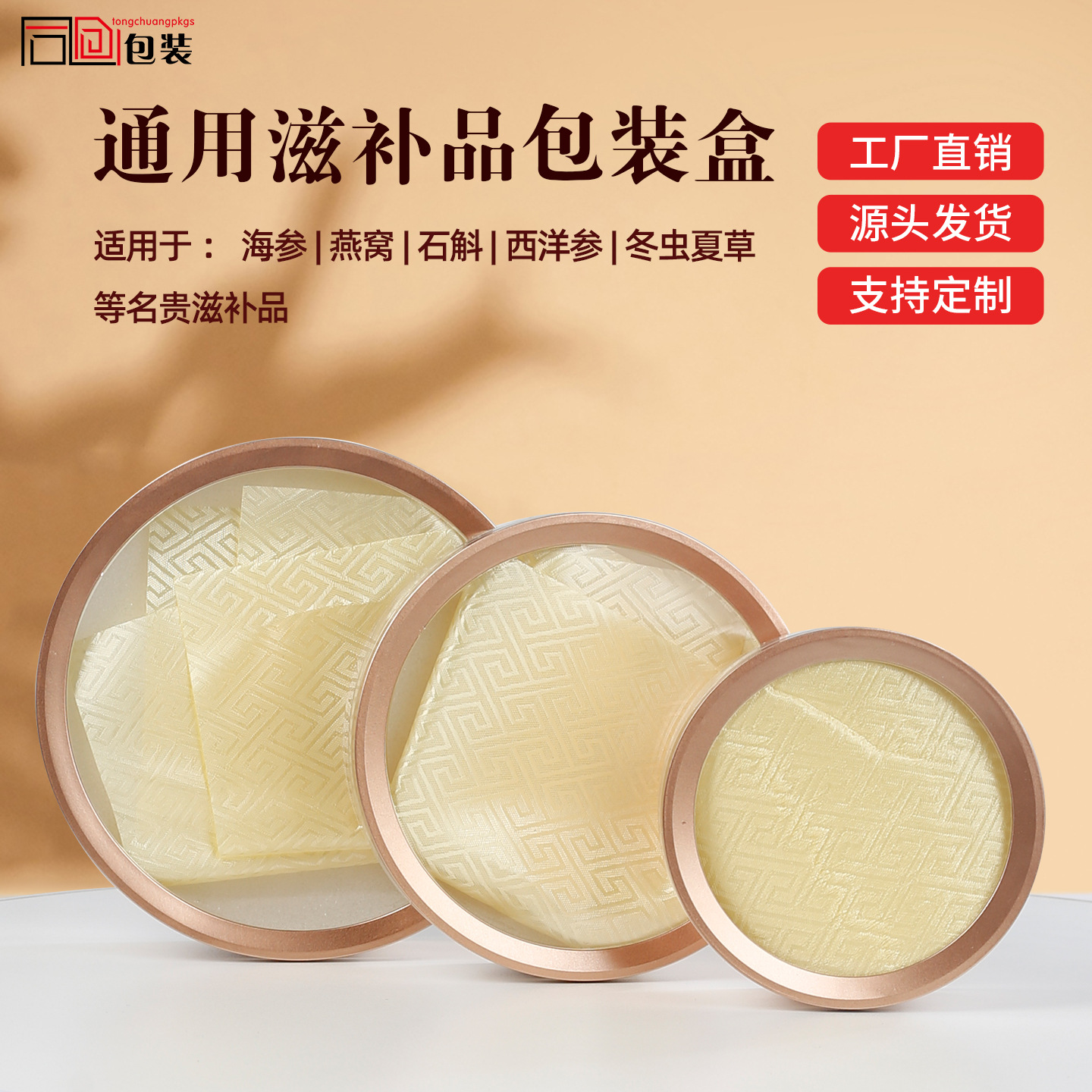 アクリル金辺円礼箱西洋人参ナマコツバメ巣虫草滋補包装金枠八角箱空内箱