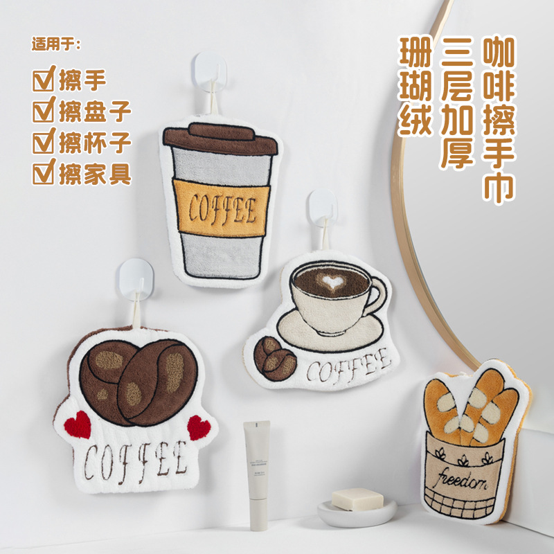 国境を越えた新しいコーヒータオルはサンゴのベルベット刺繍タオルを厚くしてかわいい雑巾キッチン子供タオル