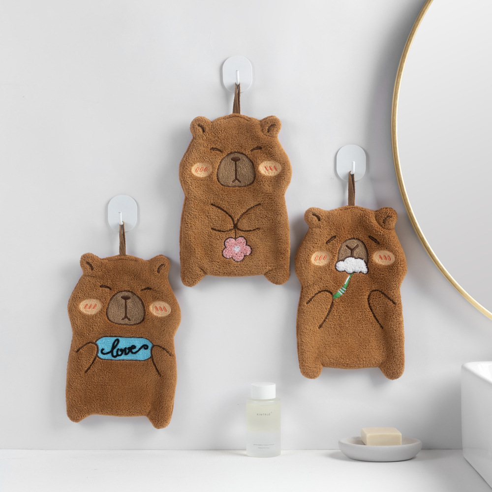 速干可爱卡皮巴拉手巾挂式新款厨房加厚卫生间卡通吸水毛巾手帕