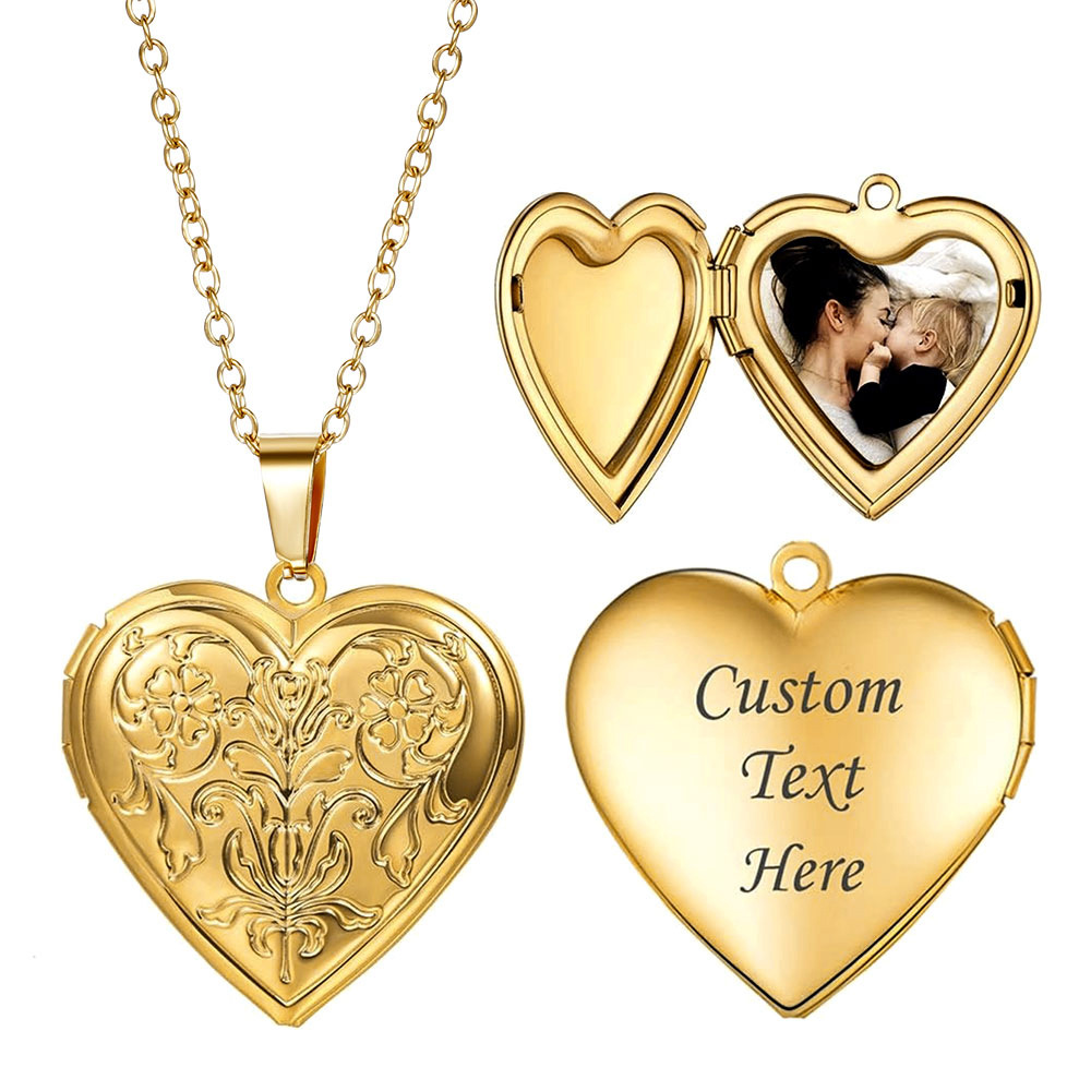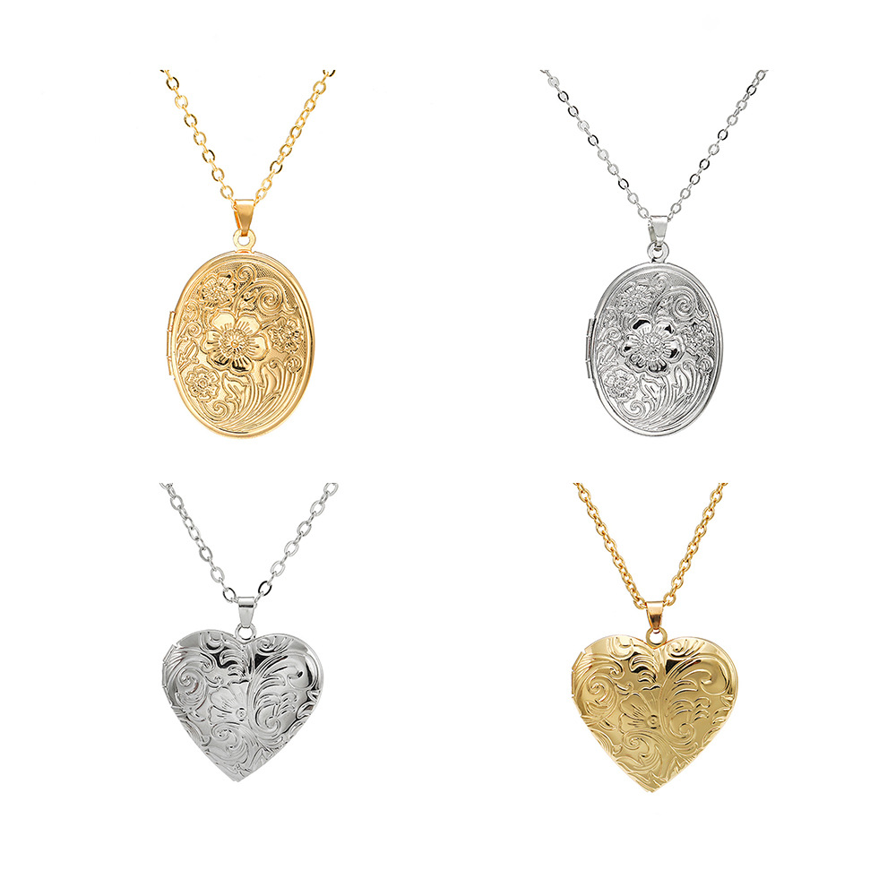 欧美跨境爆款爱心开合项链相册照片心形经典款双面刻字锁骨链项链