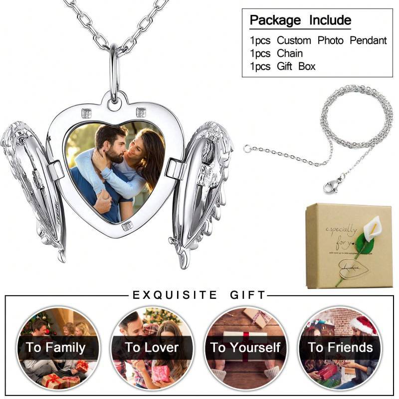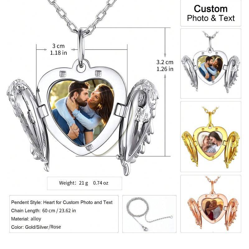 アマゾンクロスボーダー欧米風バレンタインハート型天使翼フォトフレーム写真箱ペンダントネックレス個人写真DIY