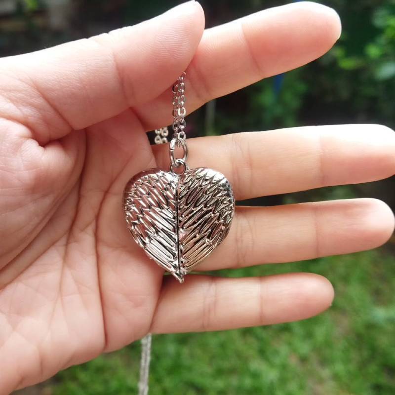 跨境欧美卖爆金属爱心项链亮面可放相片开合翅膀相盒项链吊坠桃心