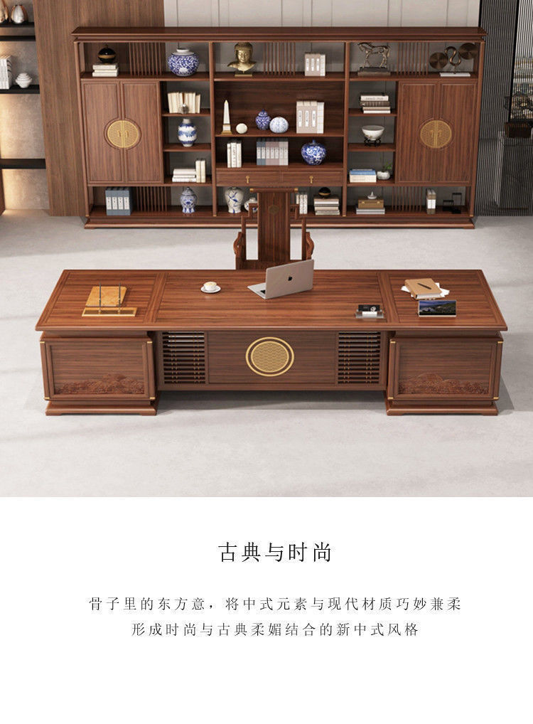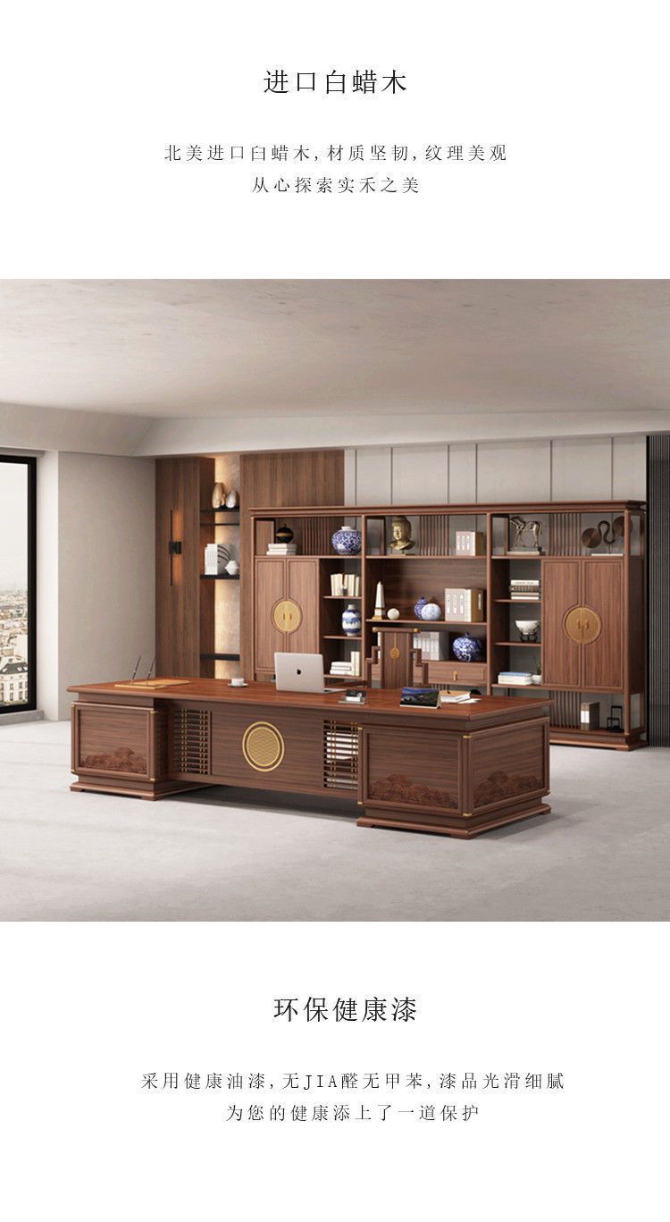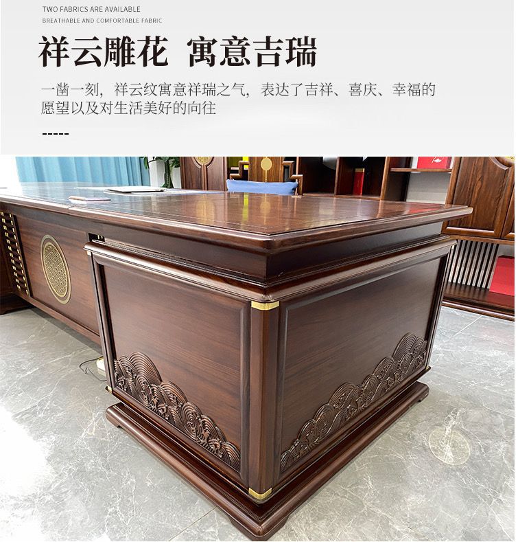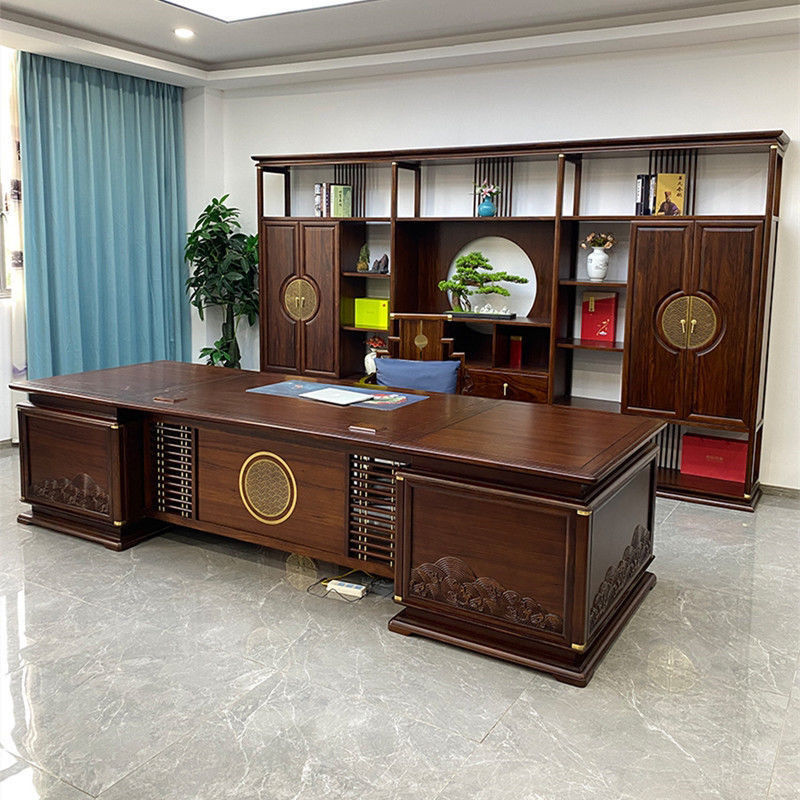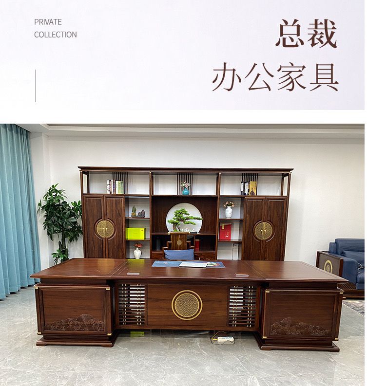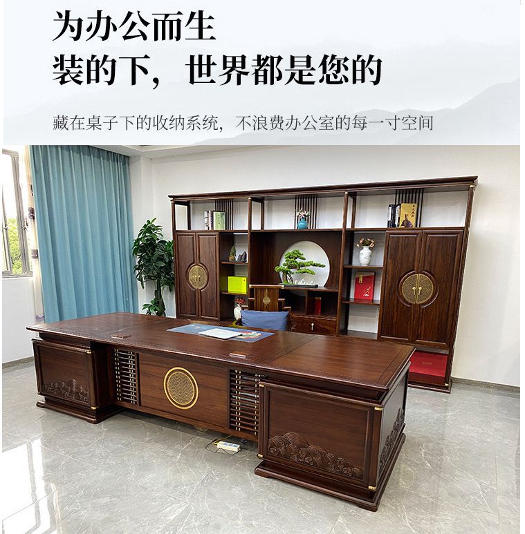 【オフィス必須】新中国式デスク烏金木老板テーブル大気総裁断テーブル白蝋木大班台実