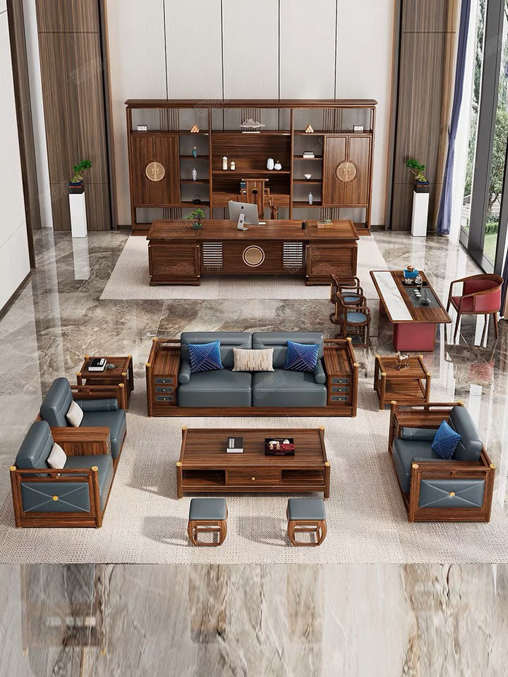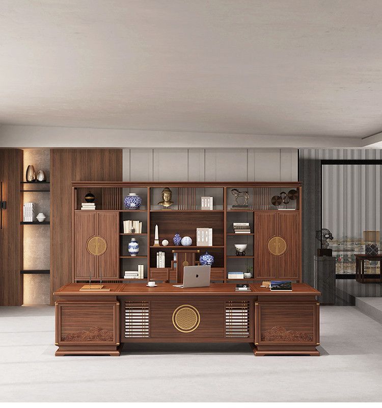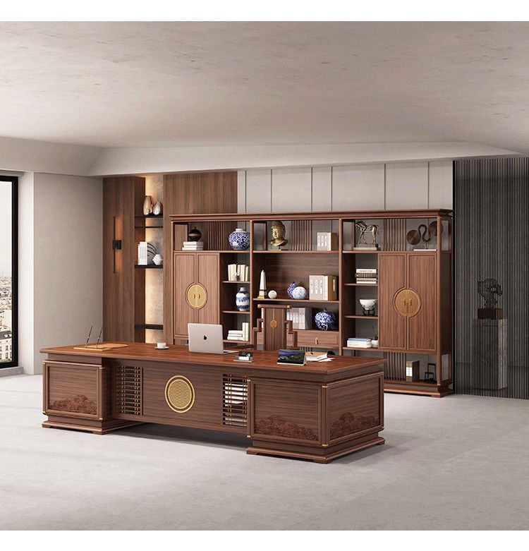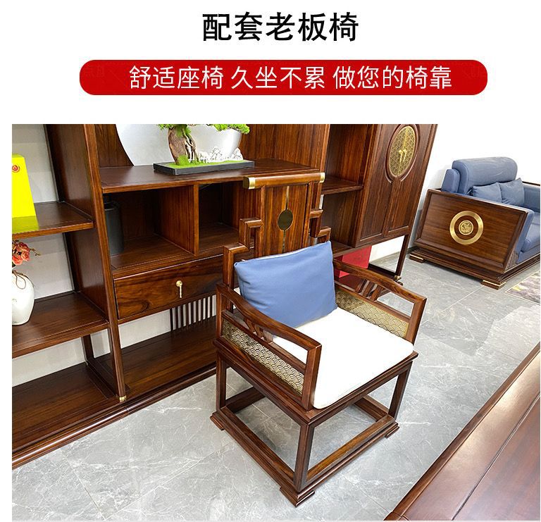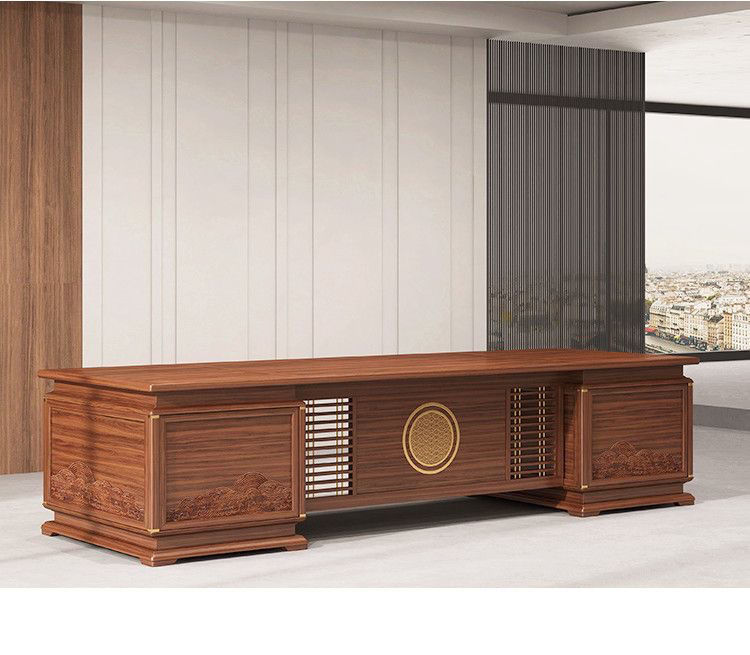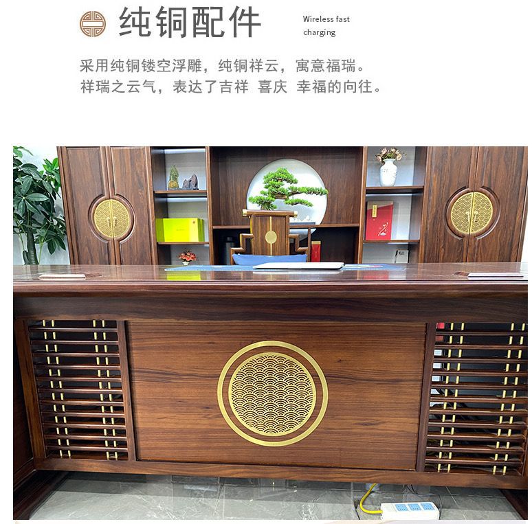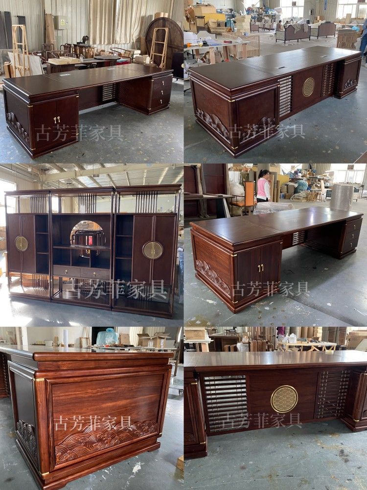 【オフィス必須】新中国式デスク烏金木老板テーブル大気総裁断テーブル白蝋木大班台実
