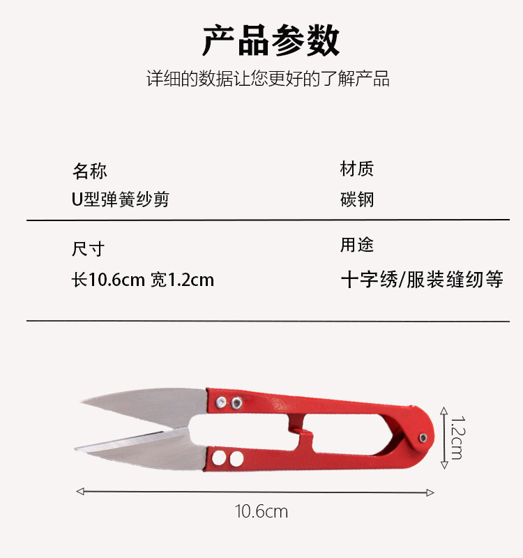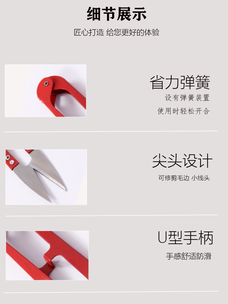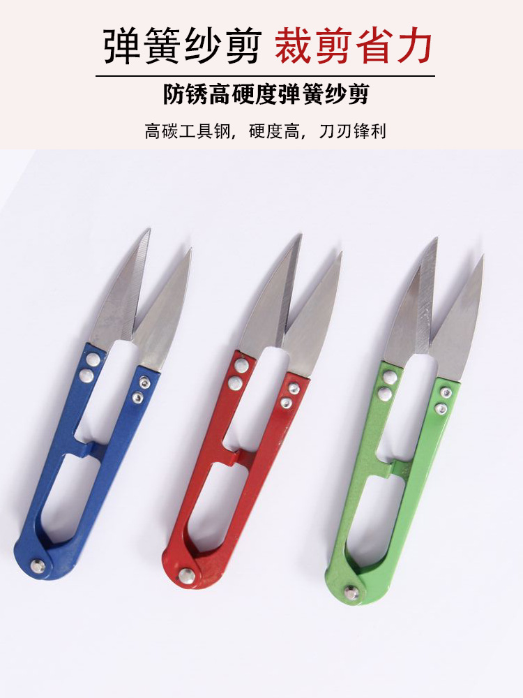 居家日用U型弹簧纱剪大号十字绣服装线头剪裁缝剪流水线用小剪刀
