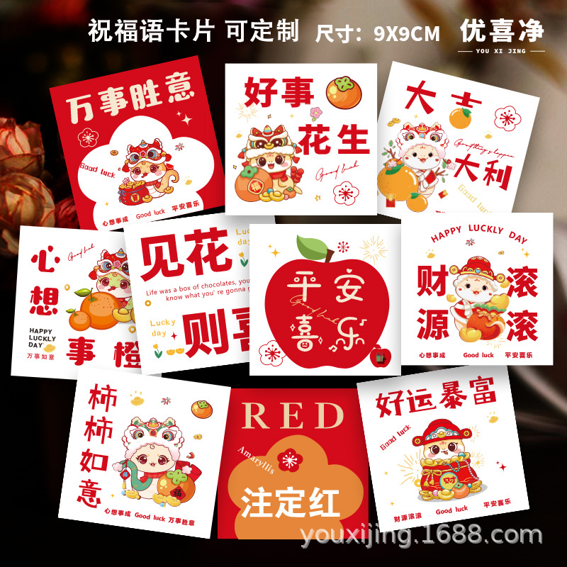 2026新款新年快乐卡片贺卡花店伴手礼吊牌祝福春节马年大吉批发