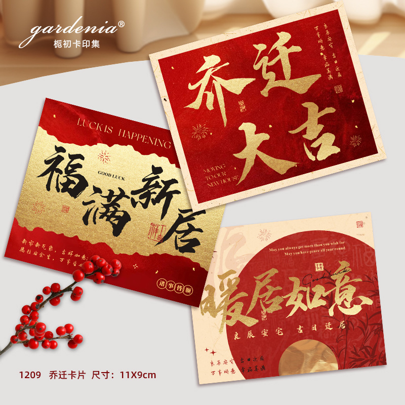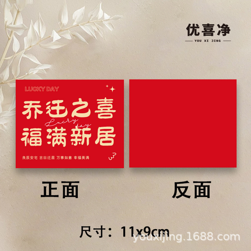 乔迁大吉贺卡大气仿金搬家祝福卡片暖居仪式布置花束花篮装饰卡