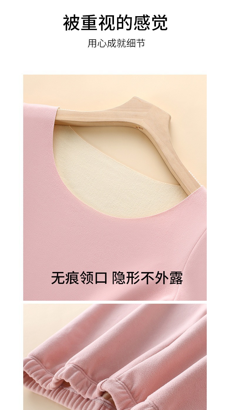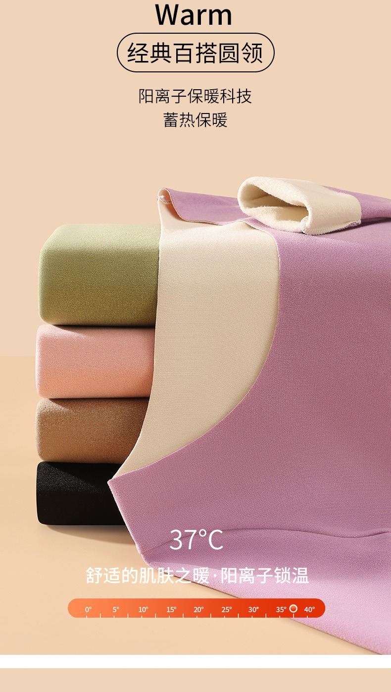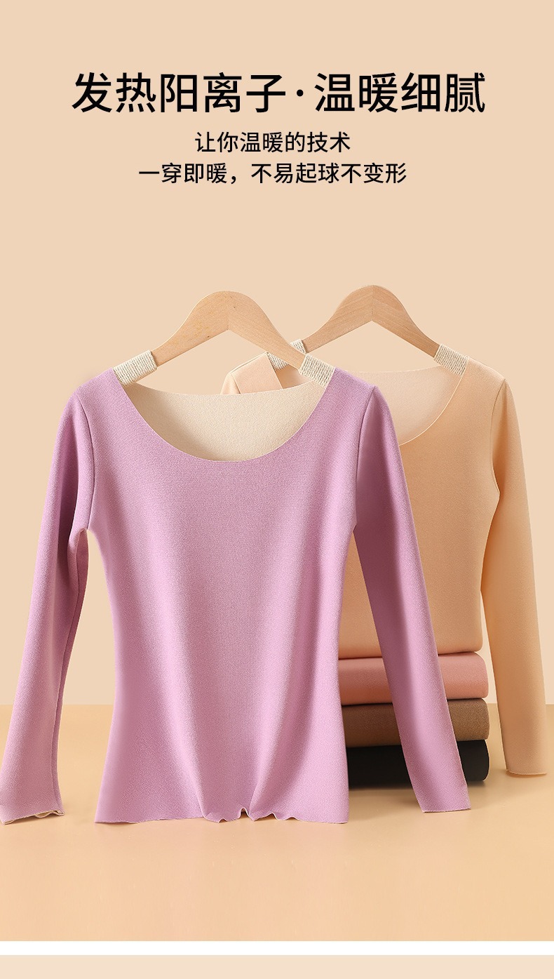 両面磨毛無痕発熱保温下着女性はベルベットの長袖上着を厚くして秋冬服を着ている