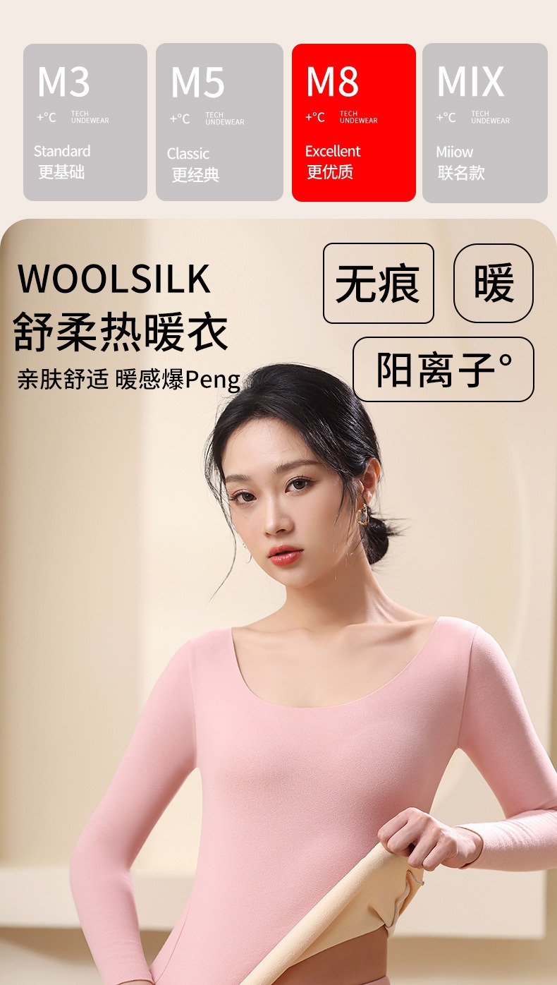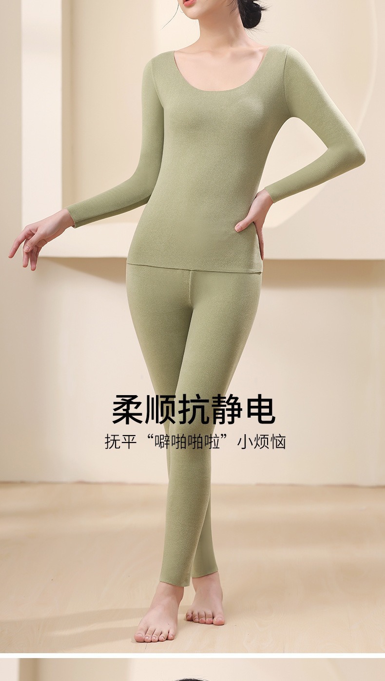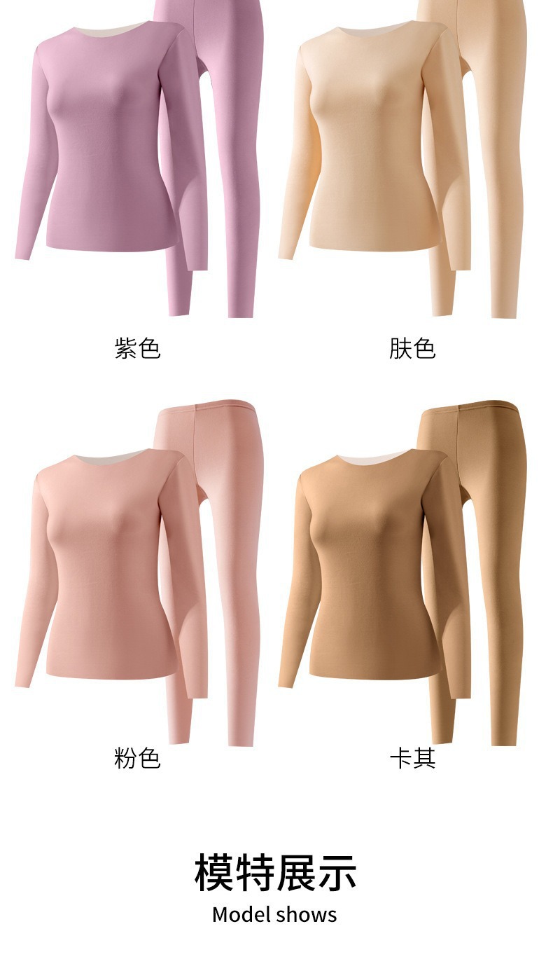 両面磨毛無痕発熱保温下着女性はベルベットの長袖上着を厚くして秋冬服を着ている