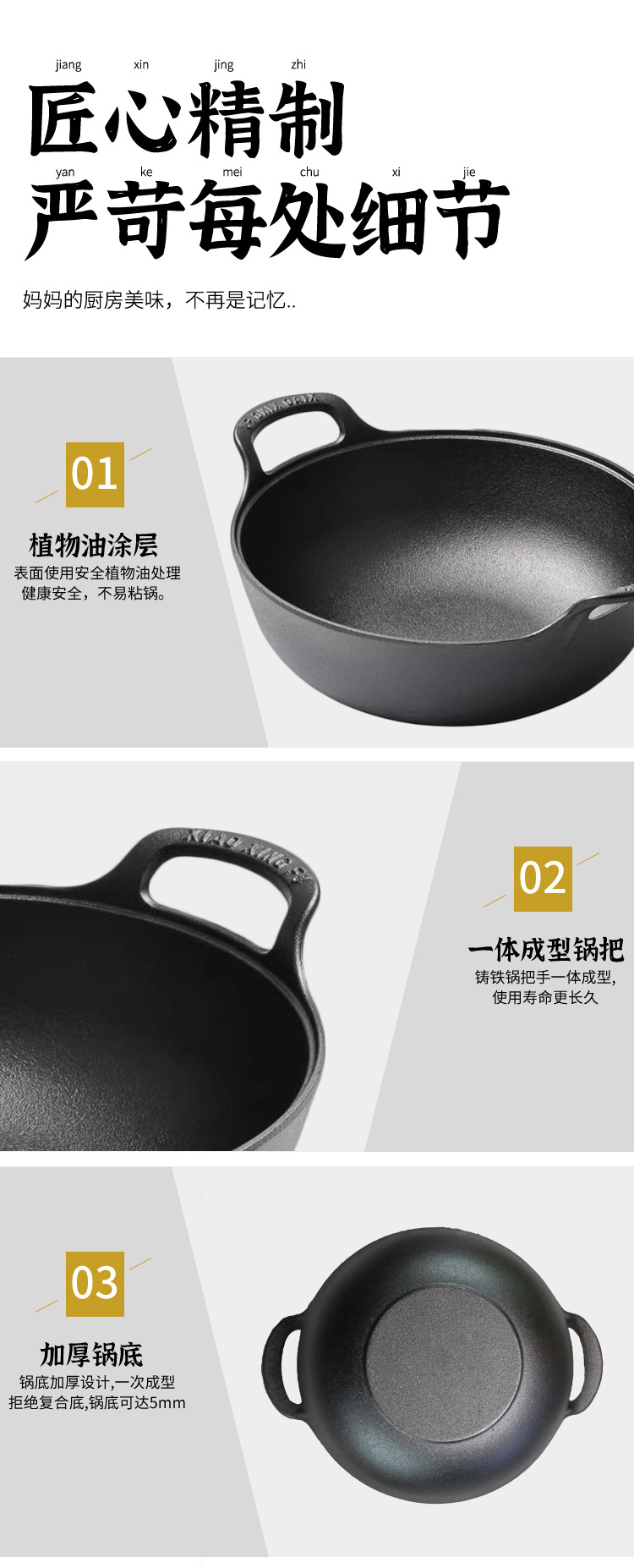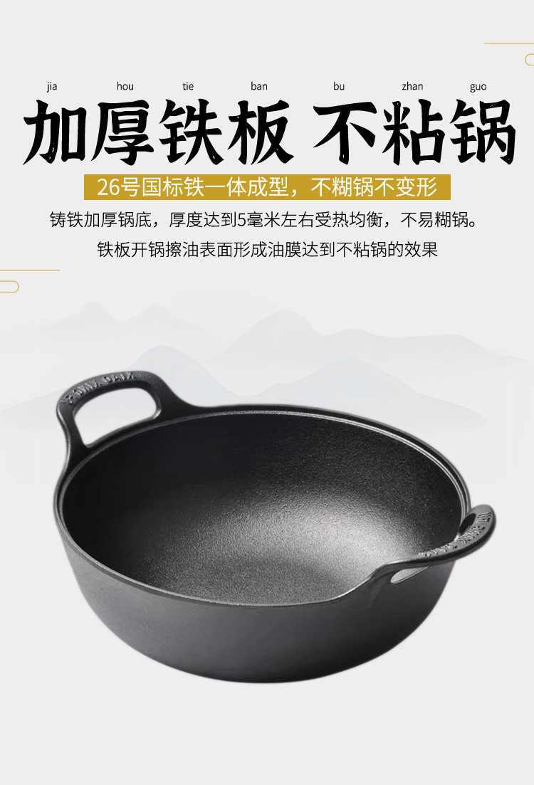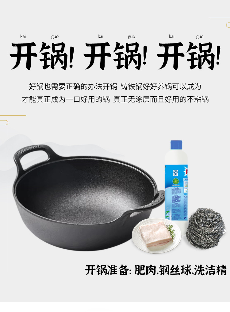 新锅使用之前先用肥肉开锅再使用,才能做到不粘锅效果