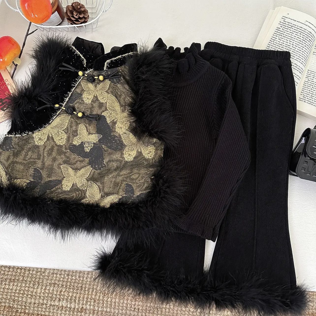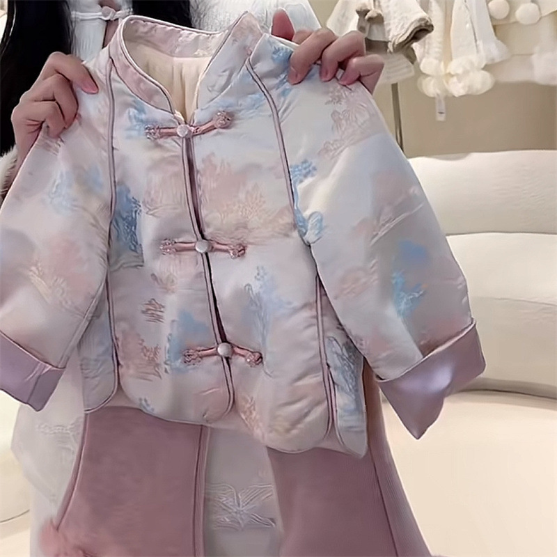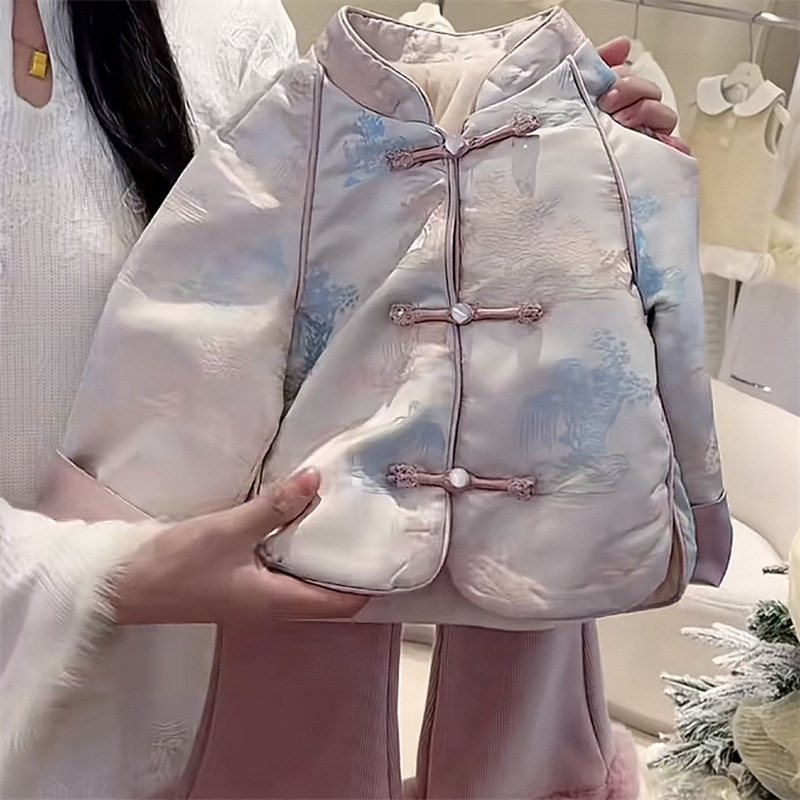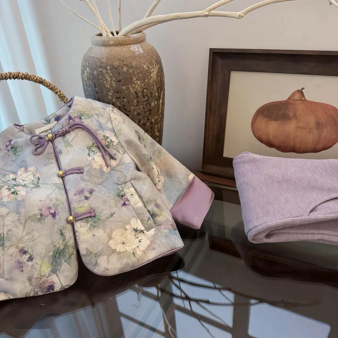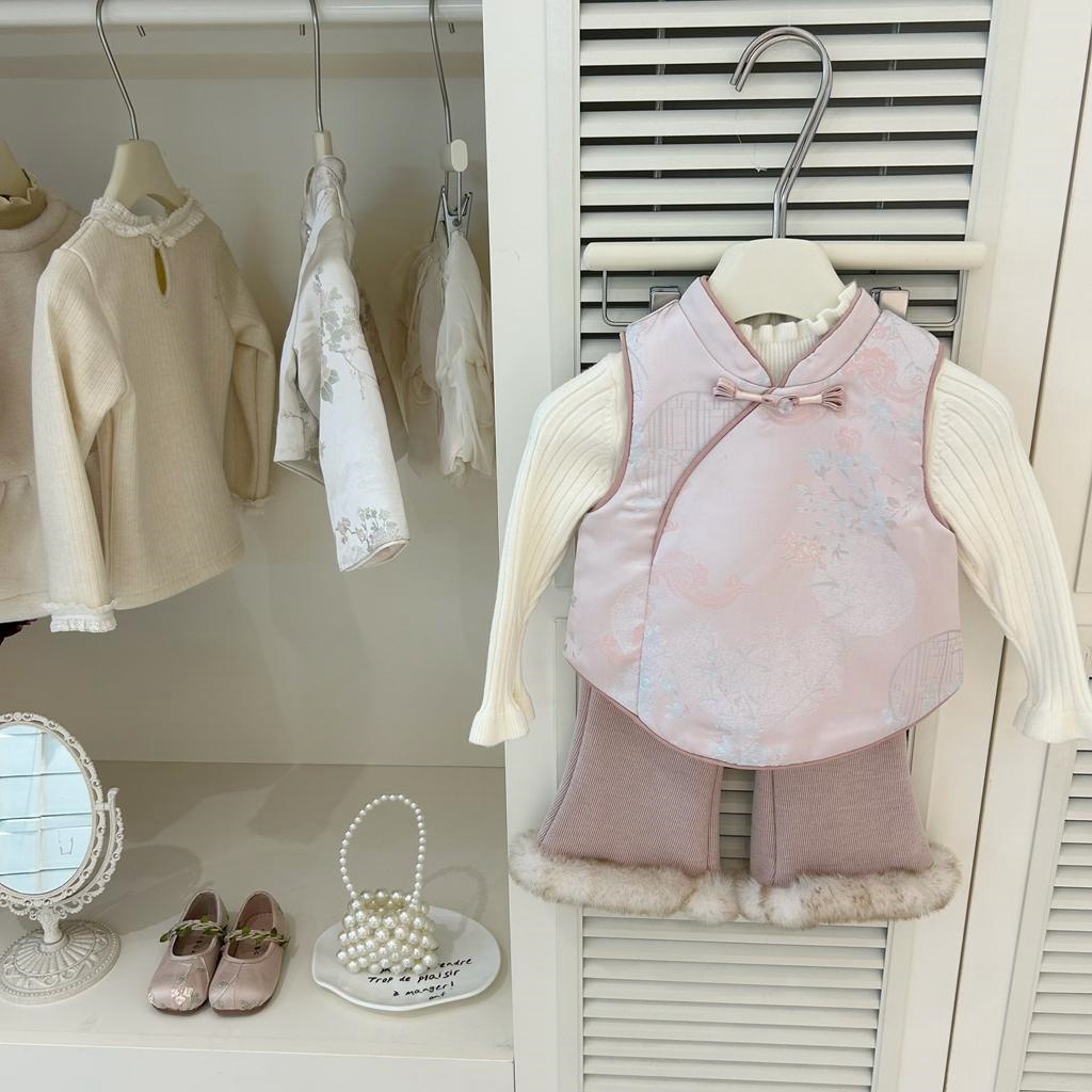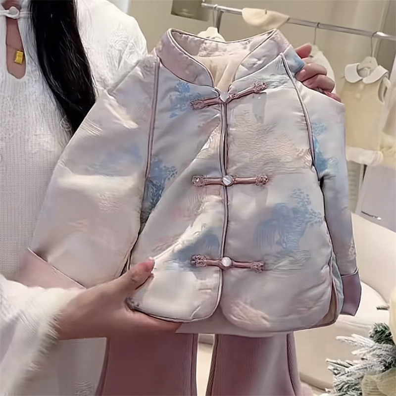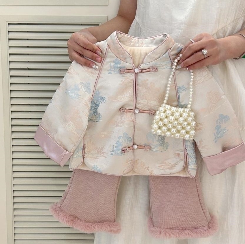 ナショナルスタイルのジャカードボタンジャケット,ピンクのブーツカットパンツ,3542-ベージュのセーター