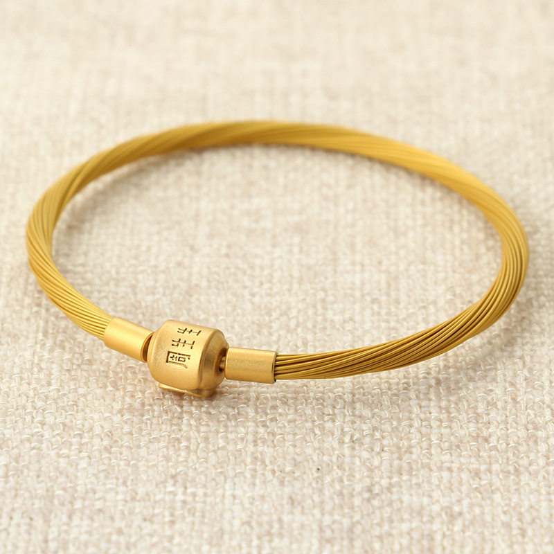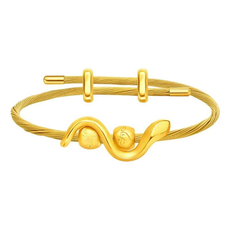 周家の鋼線の手綱の8字のボタンはブレスレットを調節することができて、3d硬い金の回転の玉の部品の防水の金色のブレスレットを着ることができます。
