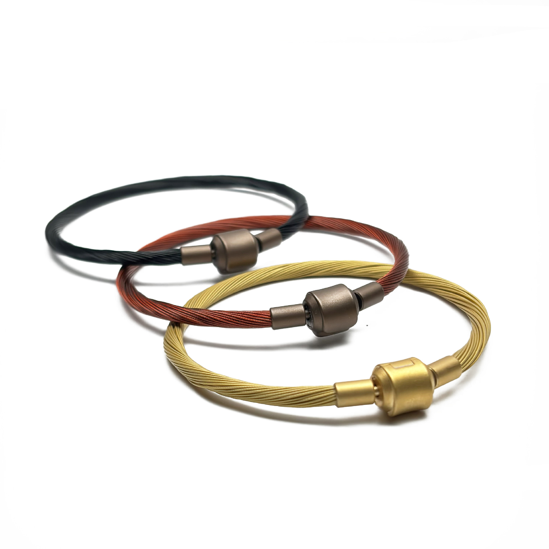 ワイヤーロープの調節可能なブレスレットは、3d硬金の金の回転ビーズの部品を着ることができます。