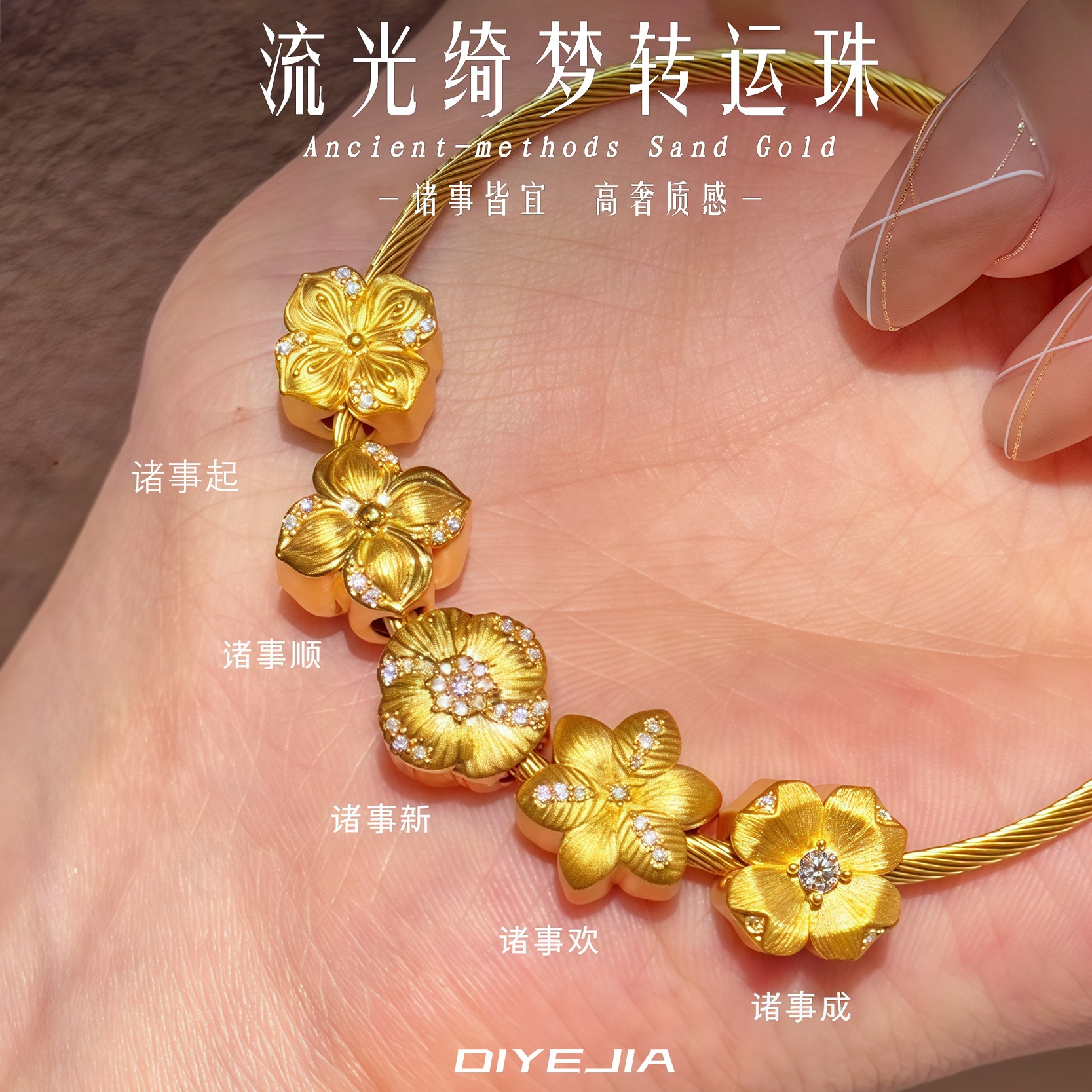黄金色のストリーマ綺夢中国式沙金転運珠diyビーズアクセサリー編み縄手串女子学生