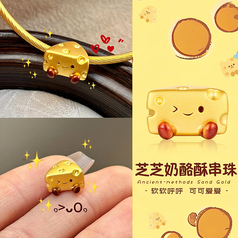 砂金デザートケーキチーズケーキトランスファービーズハンドストリングゴールドカラー小ビーズハンドロープブレスレットアクセサリーDIYジュエリー