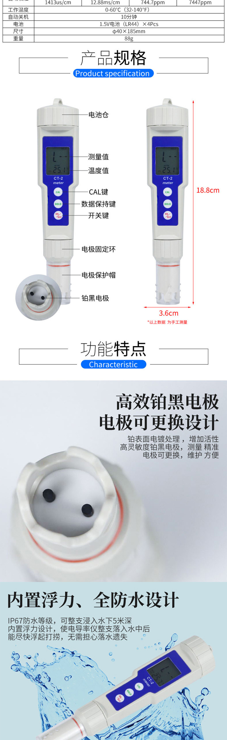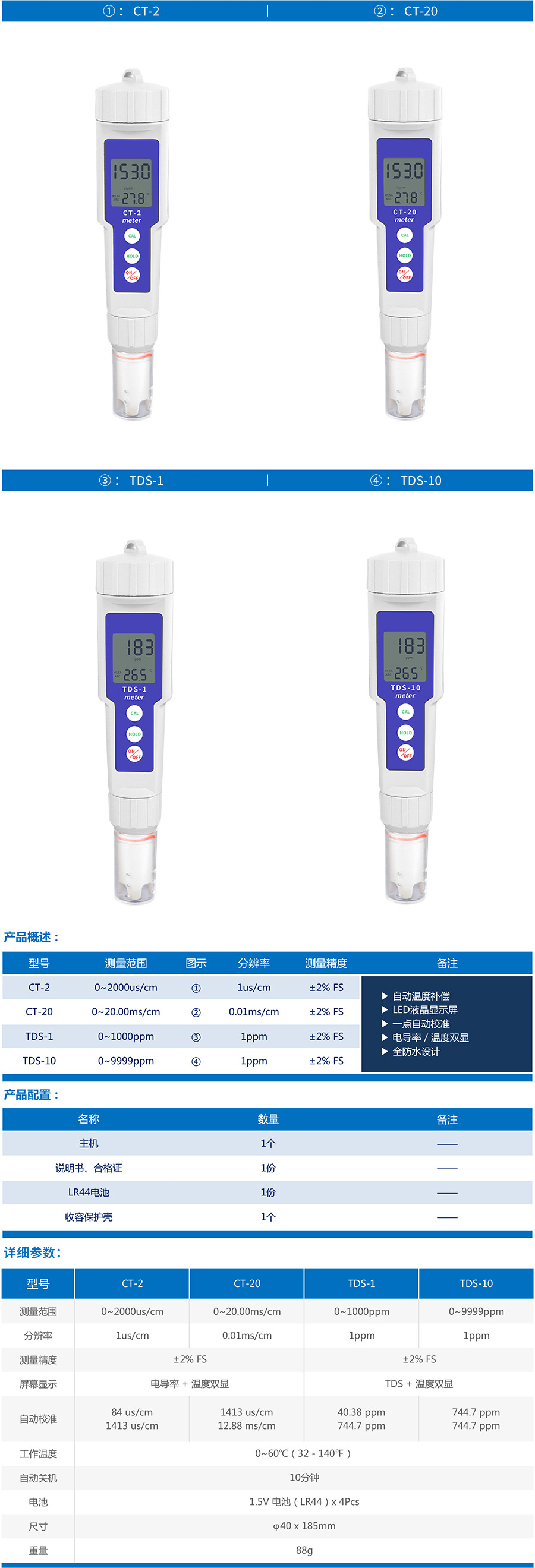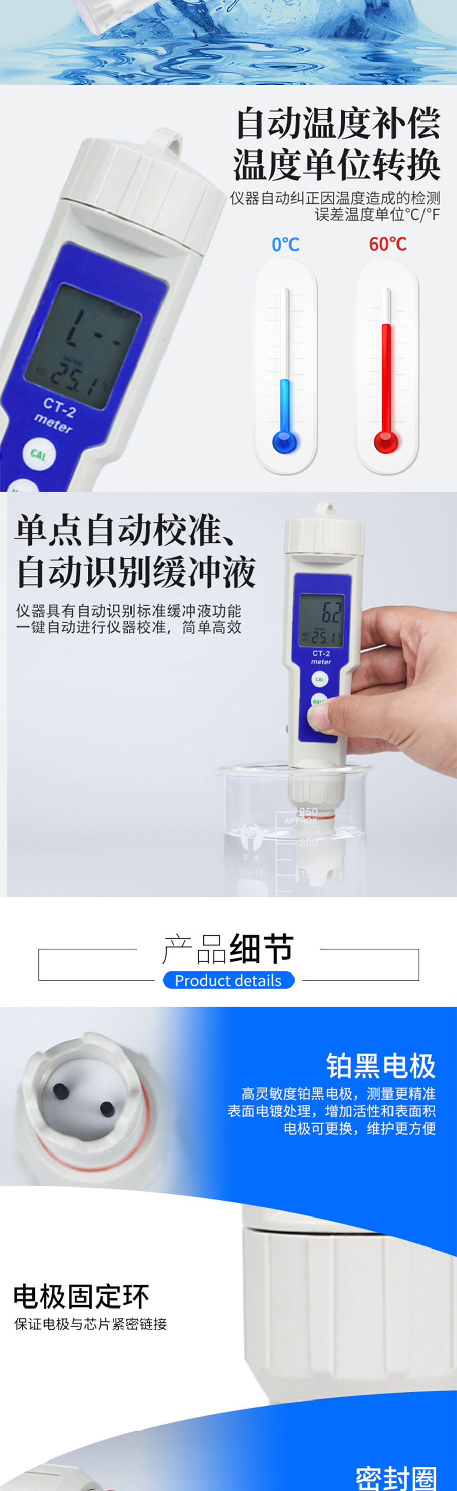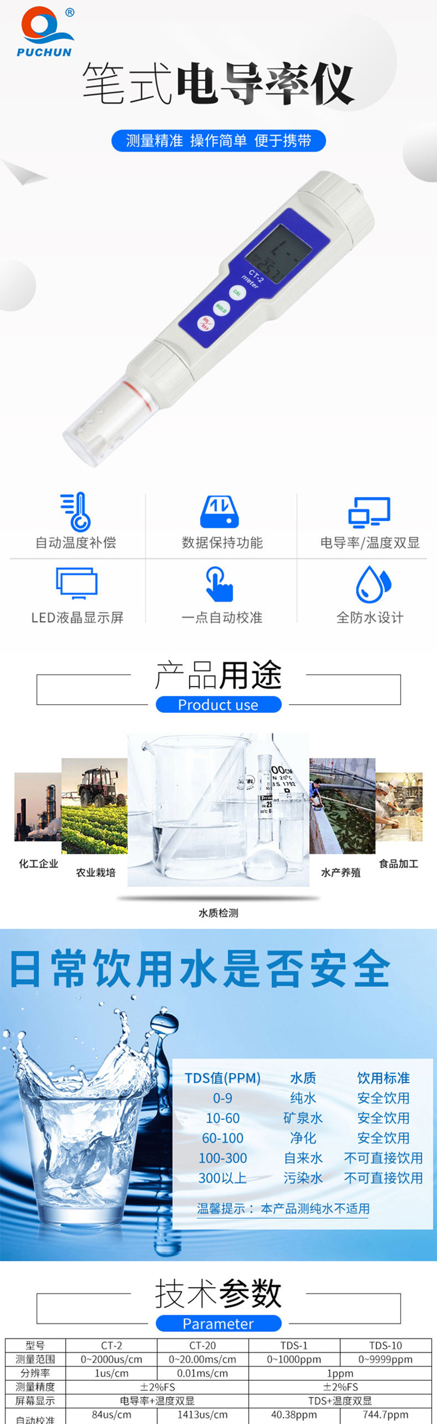 PUCHUN/プチュン CT/TDS ペン型導電率/総溶解固形分計 EC/TDS テスター ポータブル分析