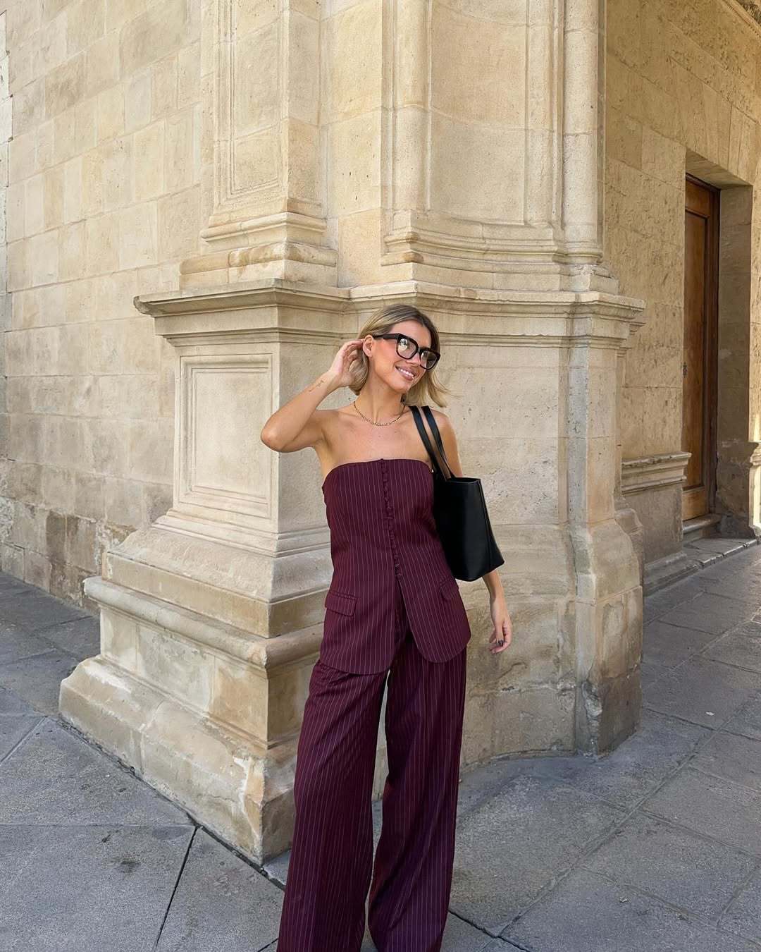 街頭の実写国境を越えた欧米のフランス式の胸のストライプのスーツのストレートなズボンのファッションの気質の2024新型の婦人服