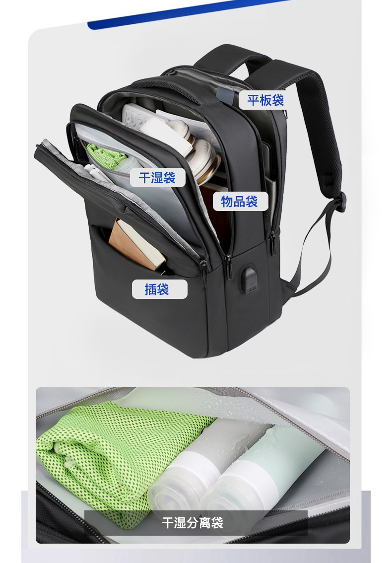 干湿分离メンズダブルバックギフト通勤リュックビジネスリュック高级感メンズパソコン鞄