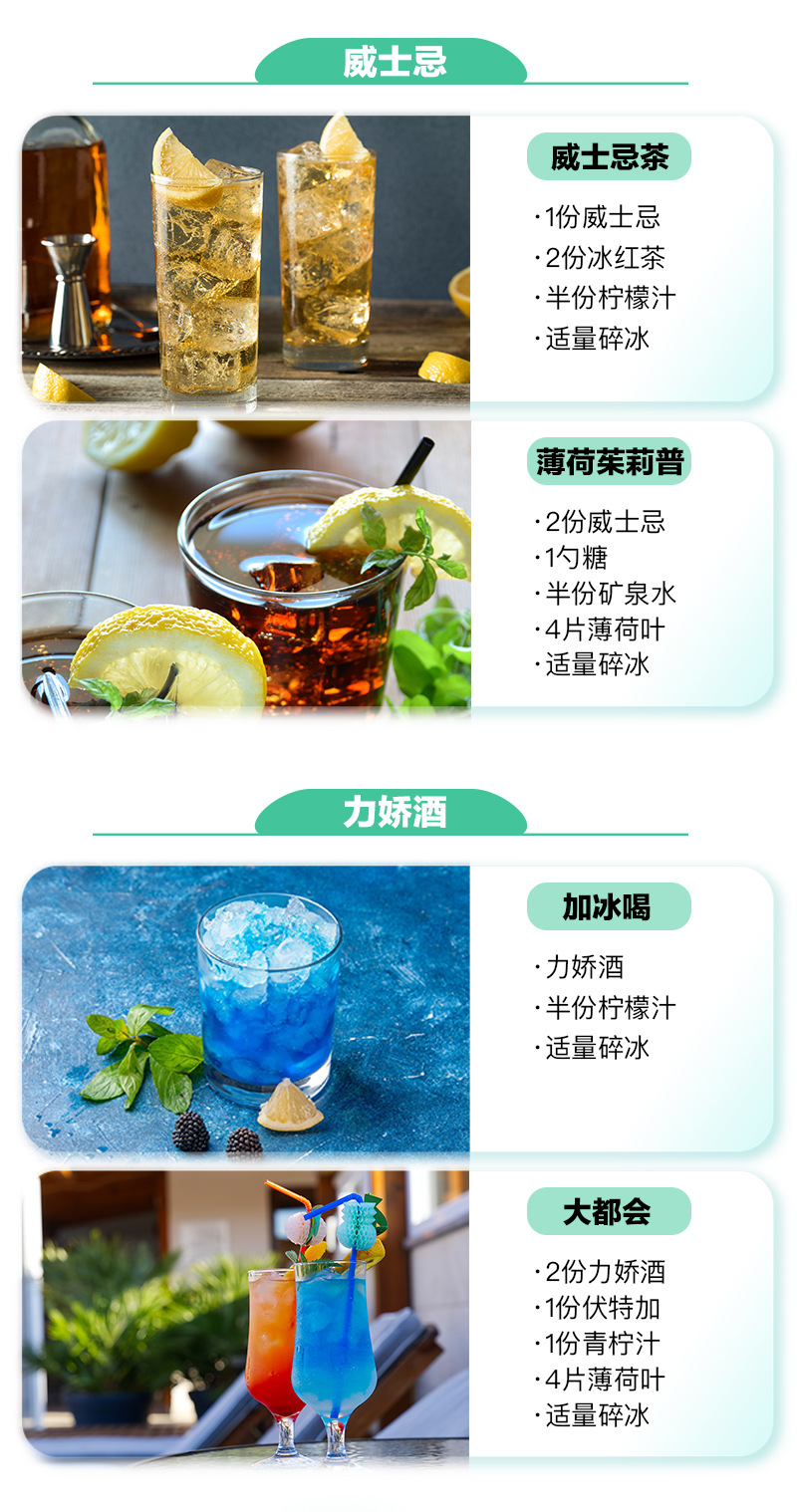 惠远酒业酒吧威士忌白兰地洋酒调酒基酒大瓶700ml组合调酒套装批