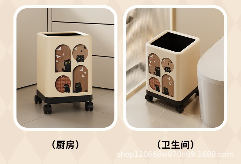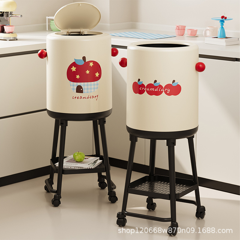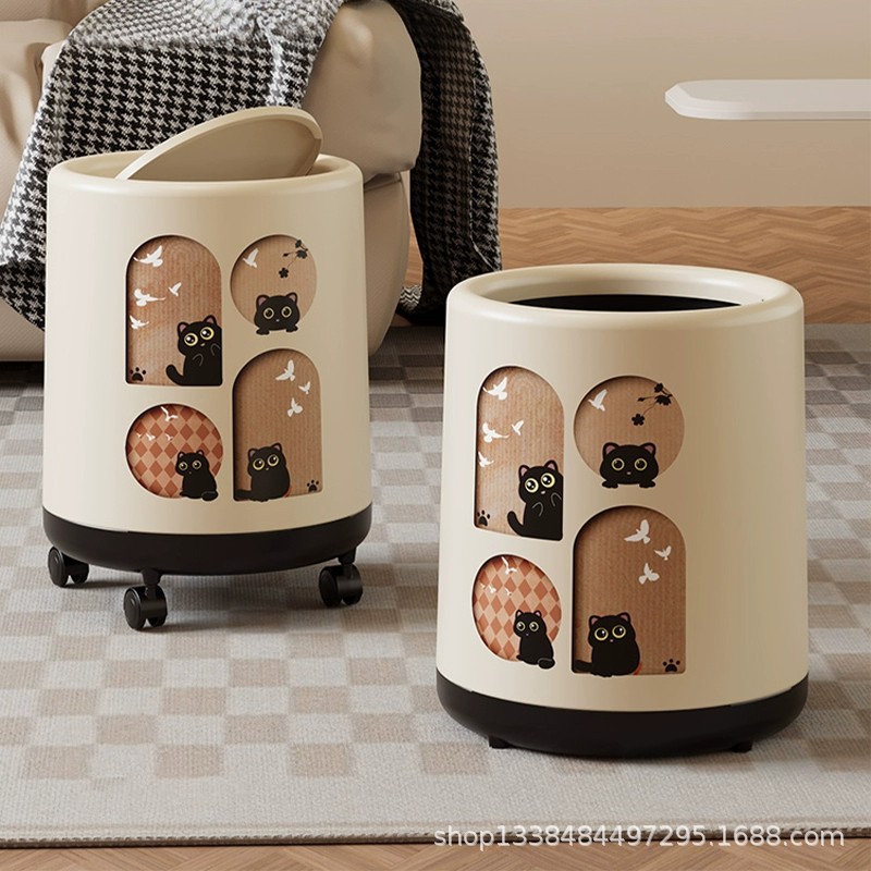 ゴミ箱家庭用高级感リビング大容量ゴミ入れ寝室キッチントイレ轮付きプラスチック収纳バケツ