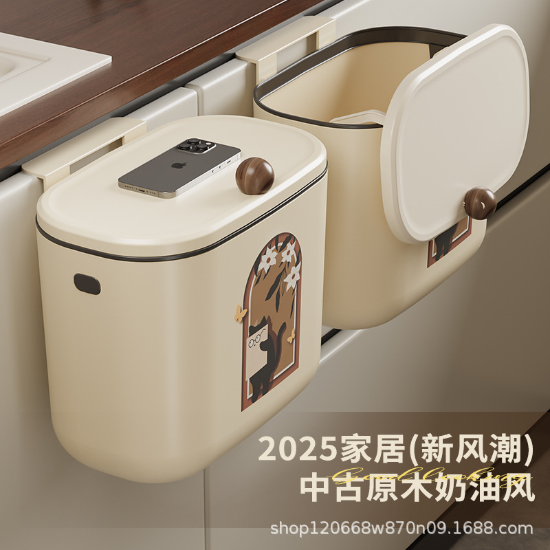 多巴胺厨房垃圾桶挂式家用2025新款免弯腰小号厨余橱柜壁挂高颜值
