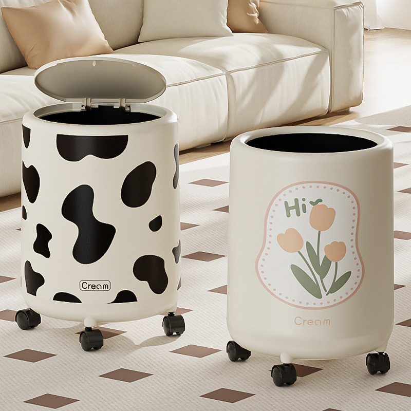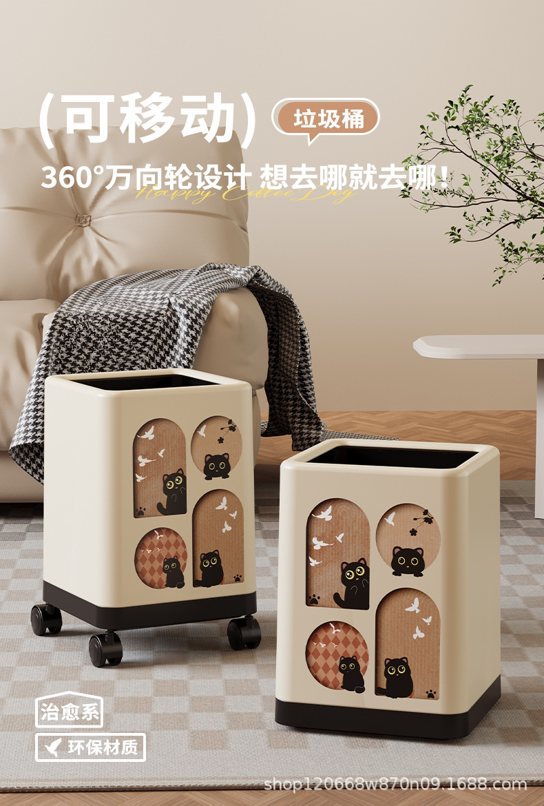 家庭用ゴミ箱蓋付き高颜値ごみかご寝室客間プーリ付き便利式多機能大型ゴミ捨て筒