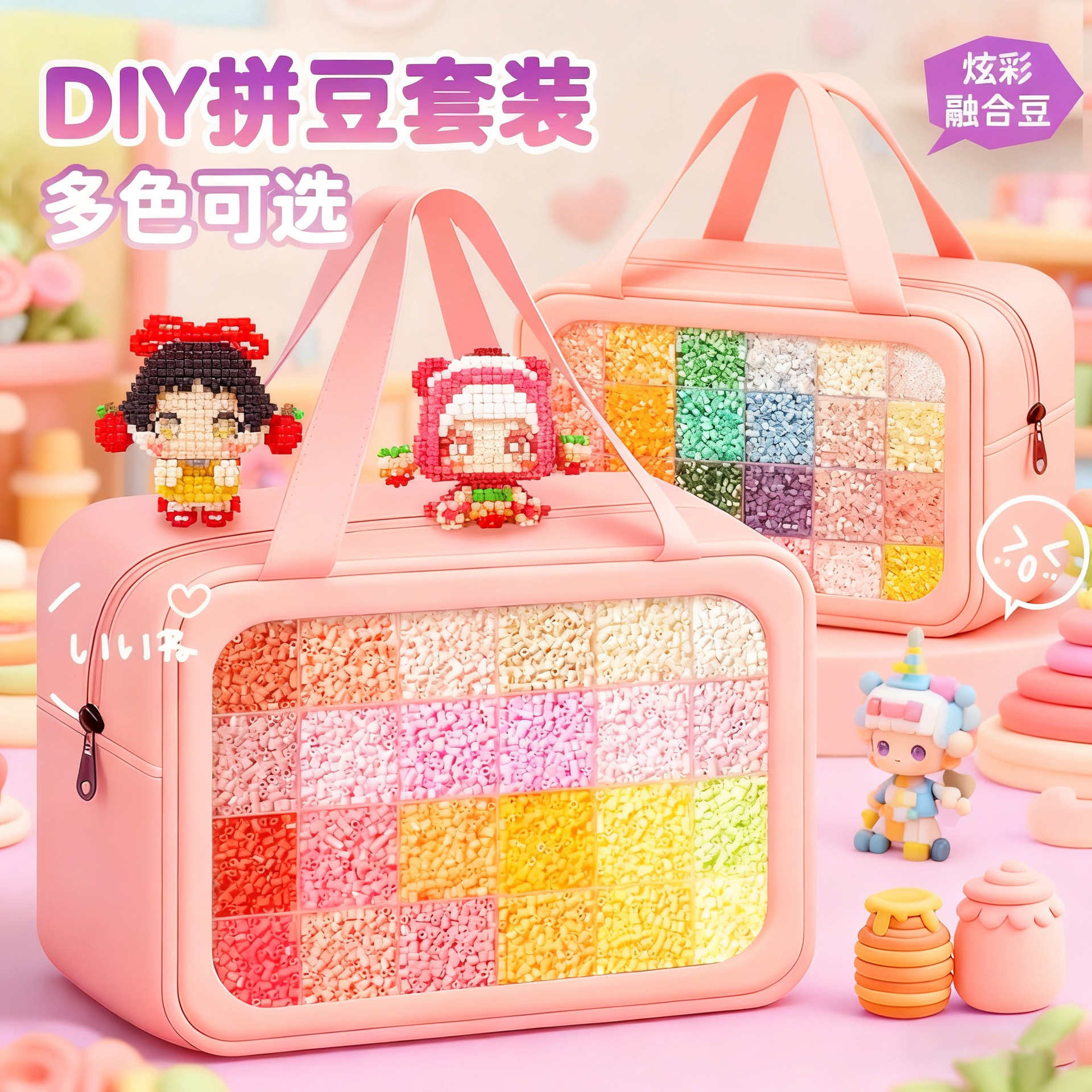 拼豆材料包全套融合豆拼豆豆批发补充装1000补充包拼豆板熨斗工具