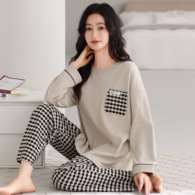 パジャマ女子春秋綿質長袖大サイズゆったりセット