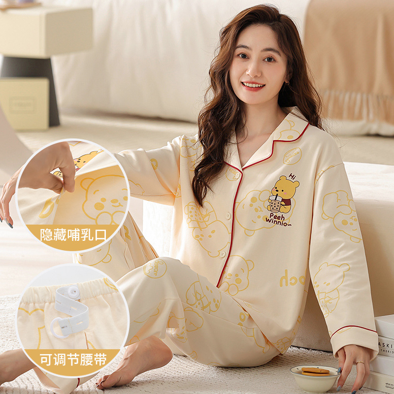 純綿月子服パジャマ春秋長袖2023年新型大サイズ妊婦産後授乳ホームウェア