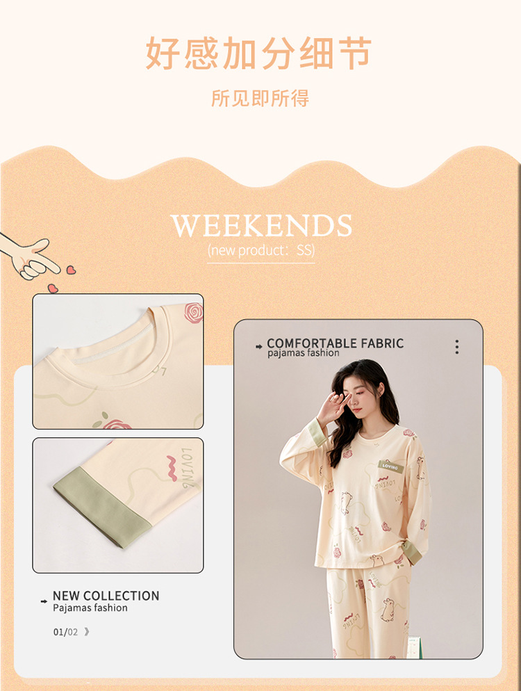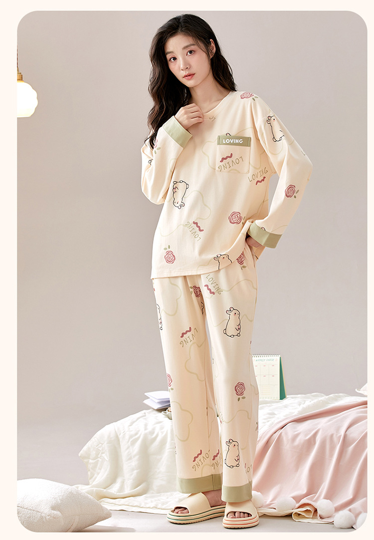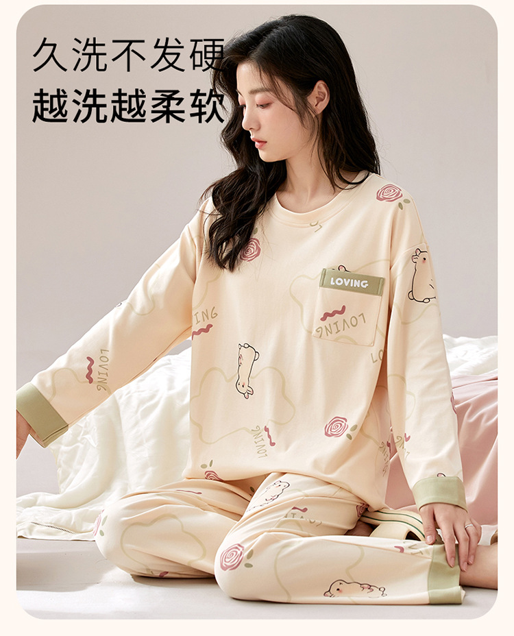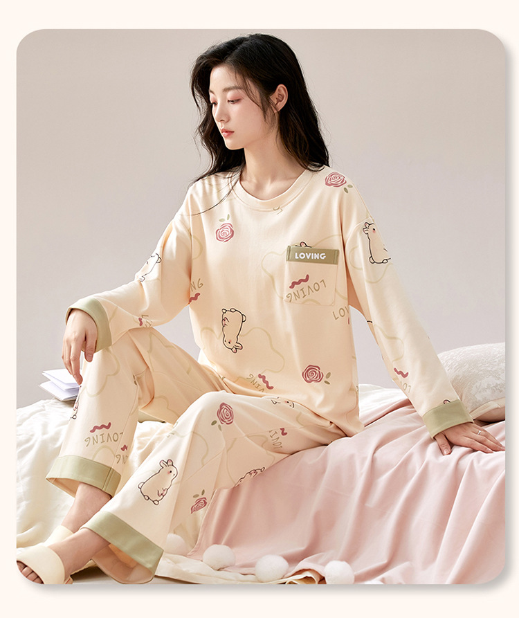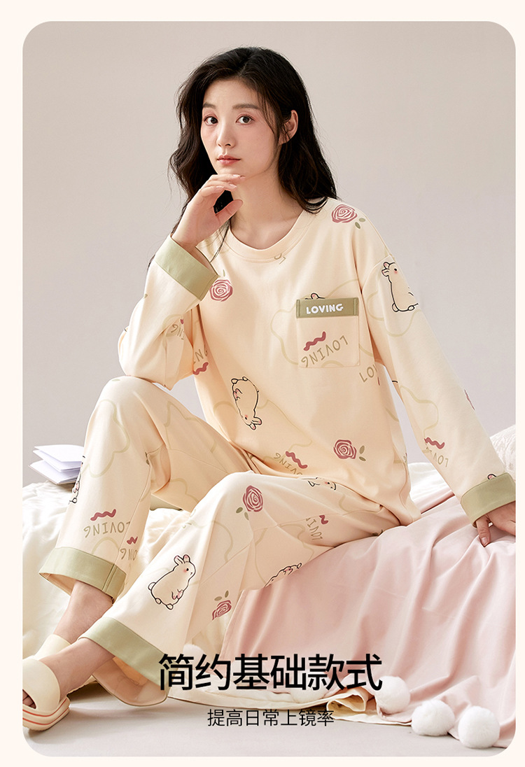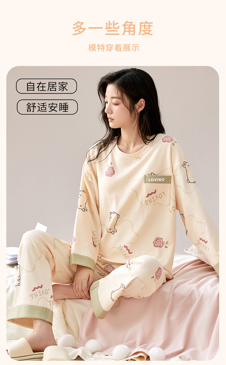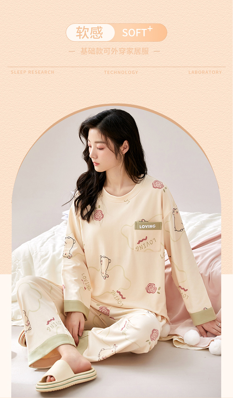2023年新作パジャマレディース春と秋コットン長袖秋少レディース学生かわいい漫画カジュアルホームウェア