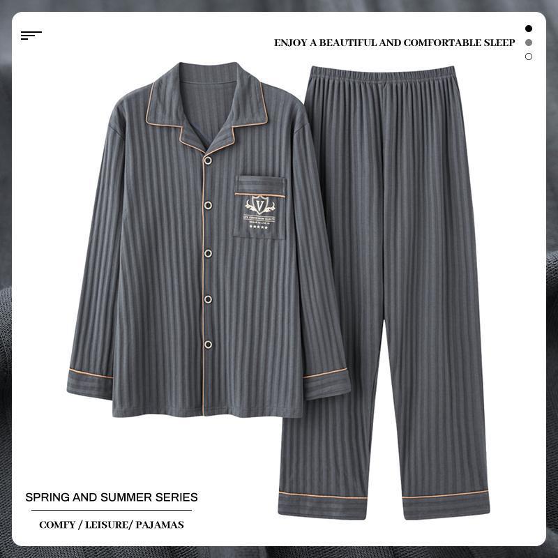 男性パジャマ男性春秋長袖カジュアルシンプルでおしゃれな家庭服男性秋冬のカーディガンの大きいサイズのスーツ