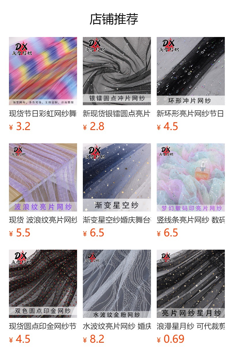 闪闪发光撒粉亮片网纱面料婚纱表演服纱缦道具背景布蓬蓬裙网布新