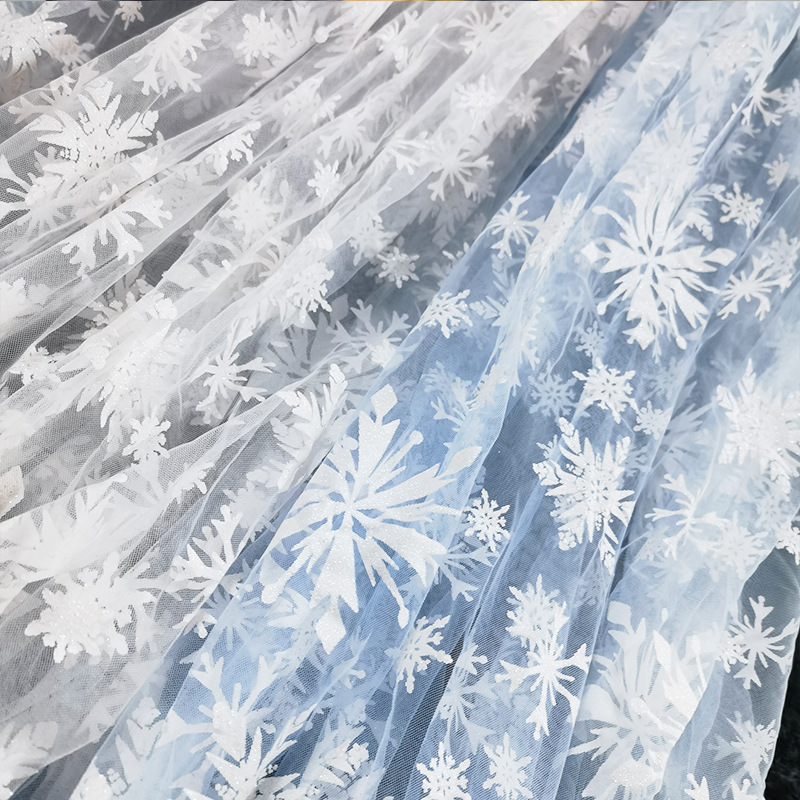 大雪片フロッキーメッシュ生地 ウェディングテーブルランナー 女の子用ワンピース 衣料品アクセサリー カバー生地 氷の女王ドレス ソフト