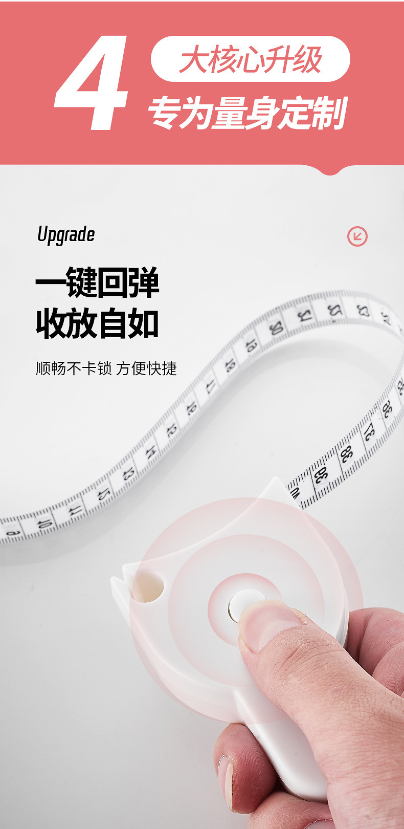 便携式三围测量软尺家用自动收缩量衣卷尺PVC双面刻度三围尺批发