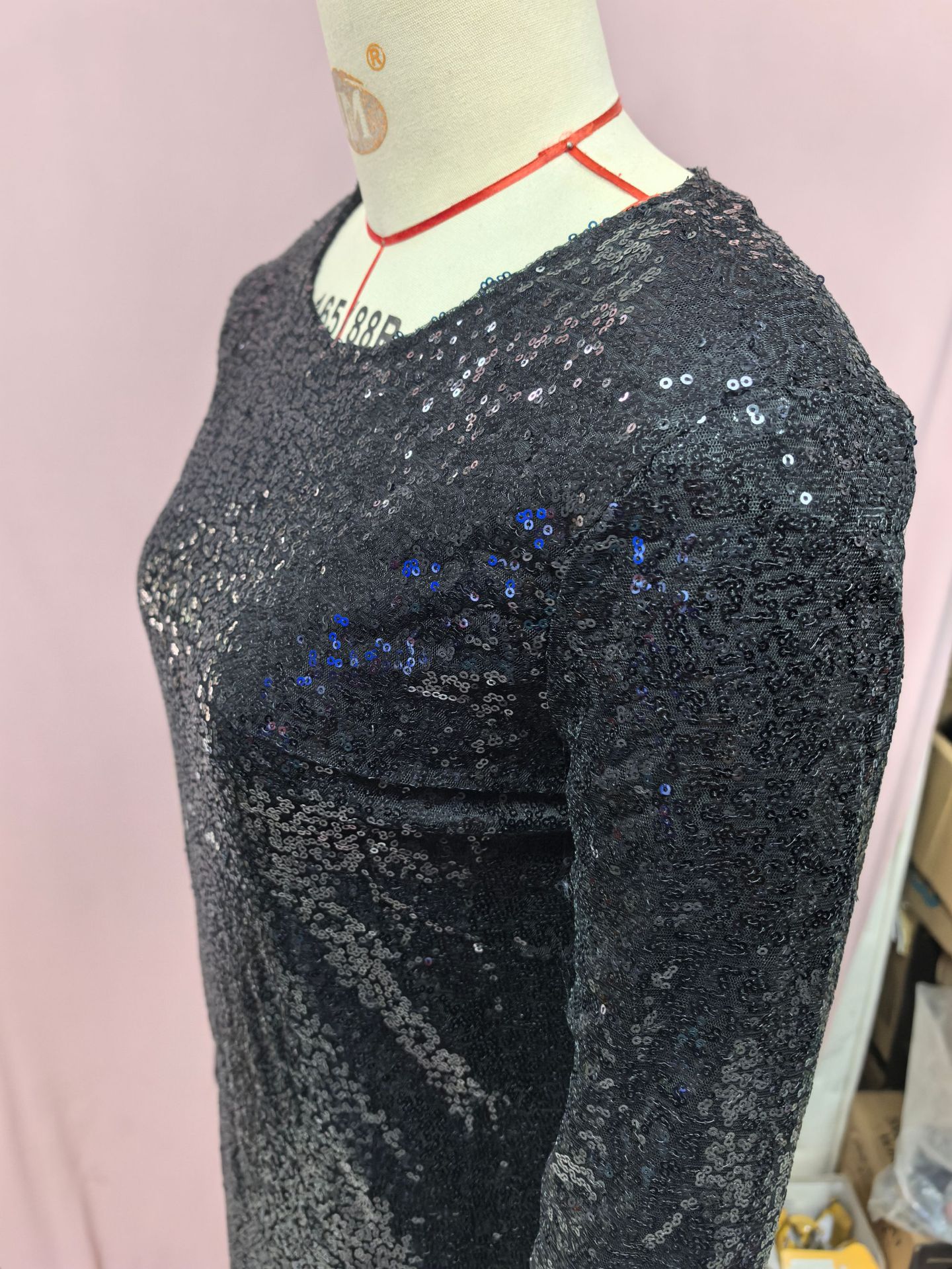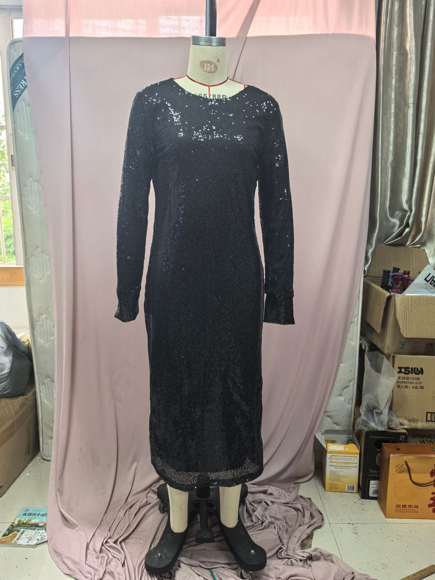 2024年独立駅ins欧米国境を越えた新型シンプルな珠片街頭風気質ファッション長袖ワンピース