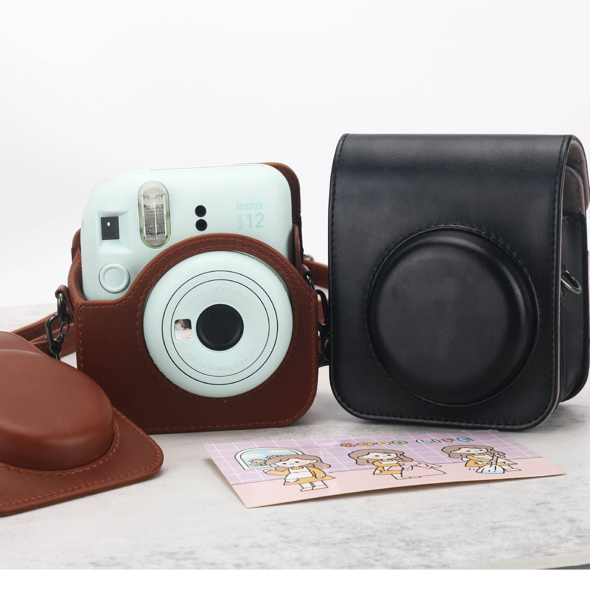 ポラロイドMINI12 無地レトロカメラバッグ ショルダーバッグ 保護カバー PUレザー カメラ撮影バッグ