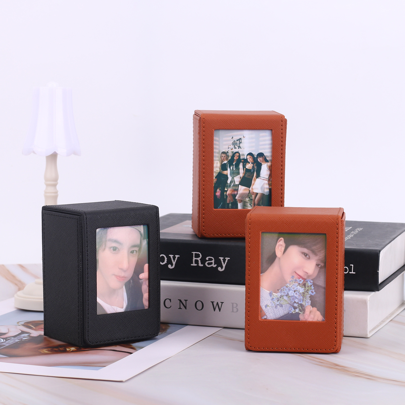 大容量は3インチ/SQ写真ケースの高級皮革模様のゲームカードを撮影して展示して一体のカードケースを収納します。