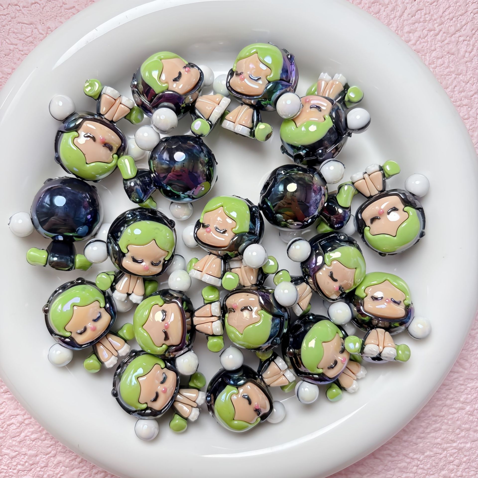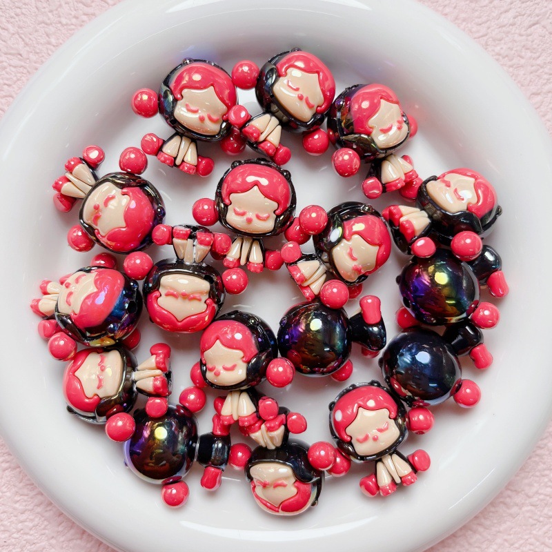 可爱卡通印花labubu星星人异形珠直孔串珠diy手机链包挂材料配件