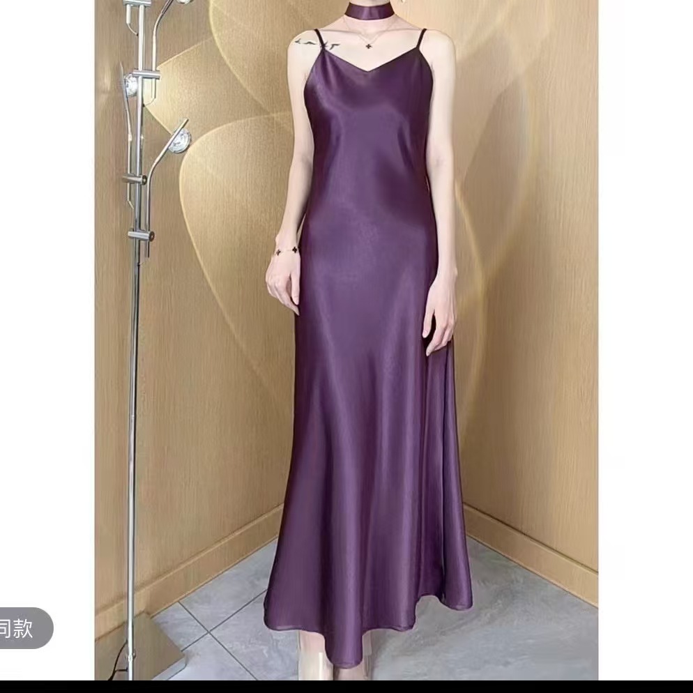 2025年夏新作 フレンチフィッシュテールスカート 酢酸サテン素材 細見え 高級感 デザイン性 ウエストシェイプ おしゃれワンピース