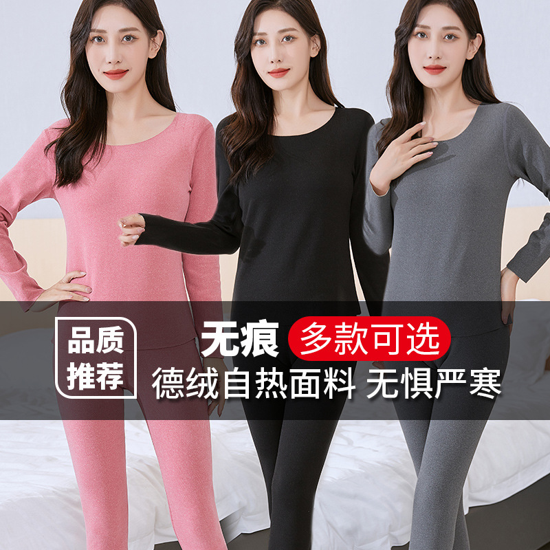 徳絨毛保温下着の女性とベルベットは発熱していて、底のないシャツの冬の秋の服の秋のズボンの女性のスーツを厚くします。