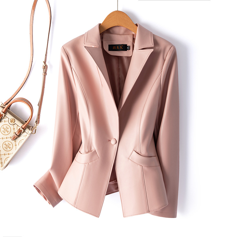 2025秋冬新作 海寧レザージャケット レディース ショート丈 スリムフィット ブレザー風 レザージャケット