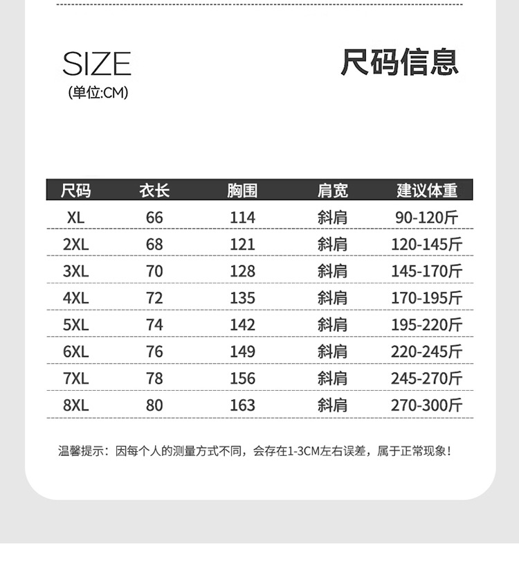 サイズ XL 推奨 45-60kg,2XL 推奨 60-72.5kg,3XL 推奨 72.5-85kg,4XL 推奨 85-97.5kg,5XL 推奨 97.5-110kg,6XL 推奨 110-122.5kg,7XL 推奨 122.5-135kg,8XL 推奨 135-150kg