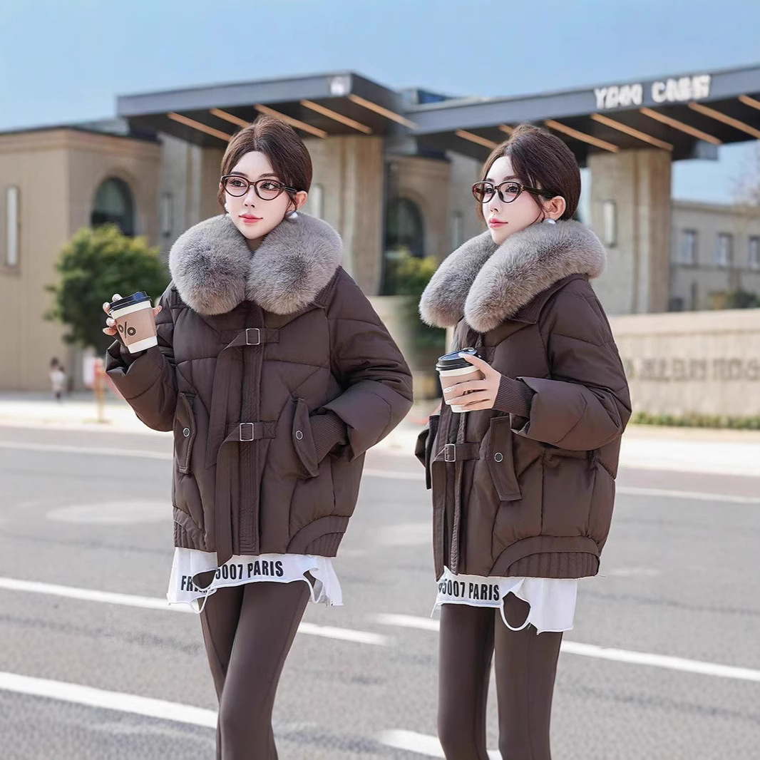 新款加厚棉服2025冬季新款小个子洋气韩版宽松棉衣加厚毛领外套潮
