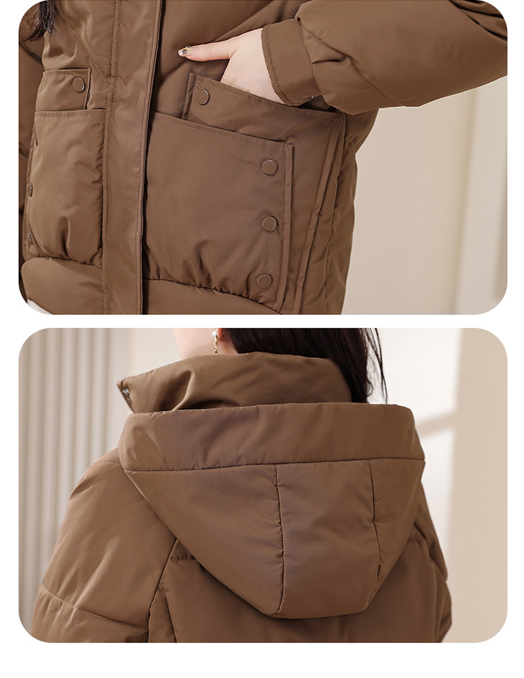 牛油果2025棉服韩版大码冬新款中长款大口袋韩版宽松棉服中长款